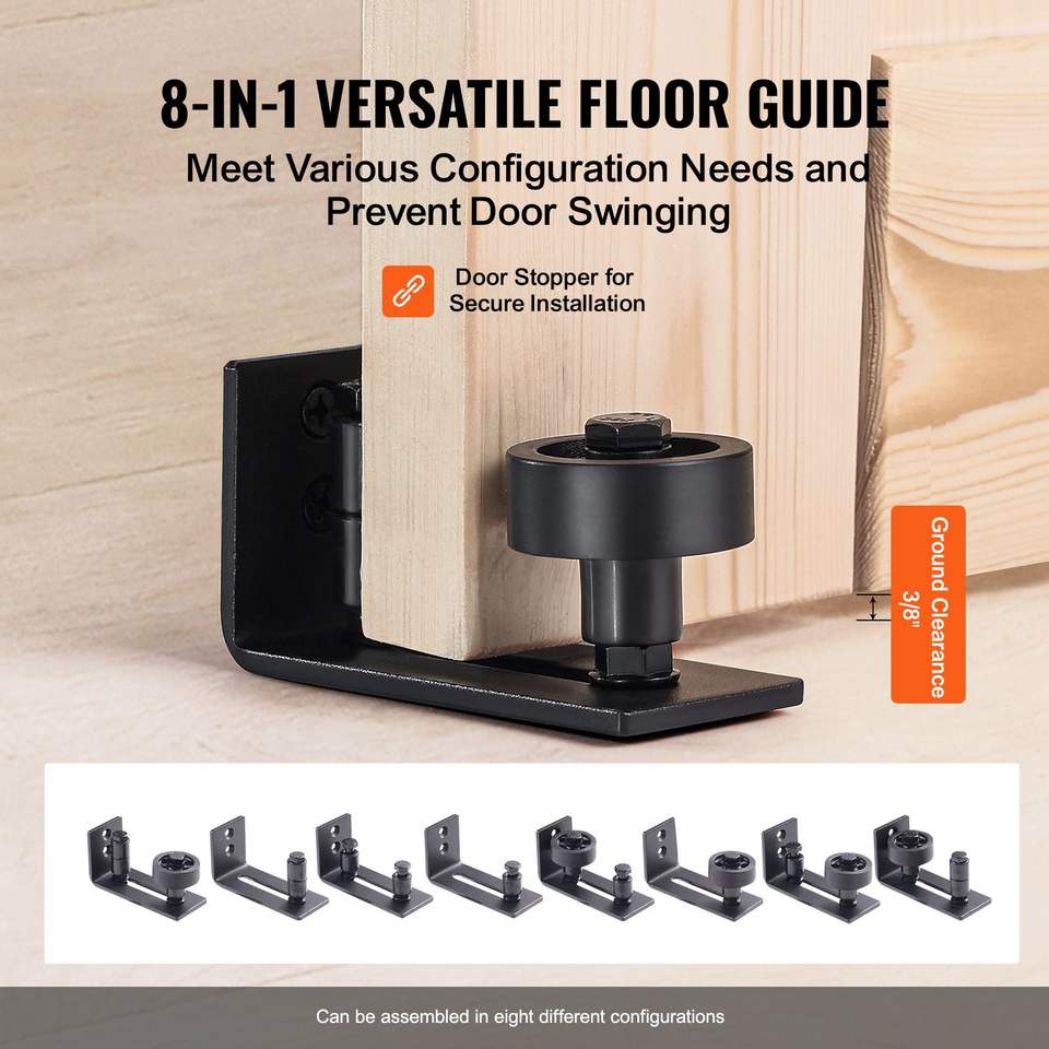 Kit Ferramenta per Porta Scorrevole con Porta in Legno 107x213 cm, Funzionamento Fluido e Silenzioso, Guida a Pavimento 8-in-1 Inclusa