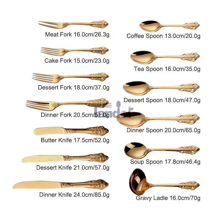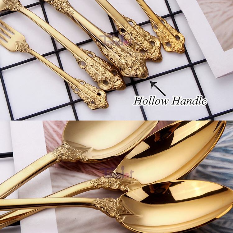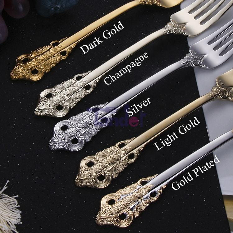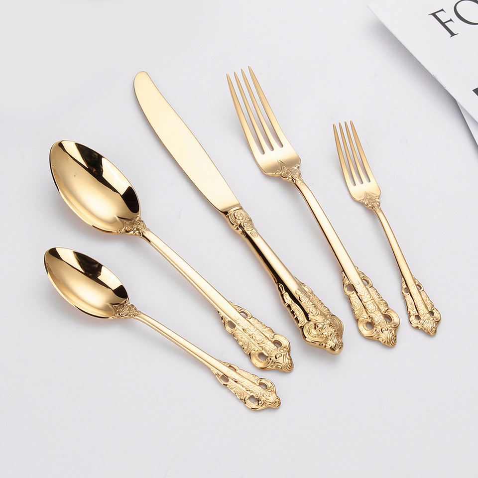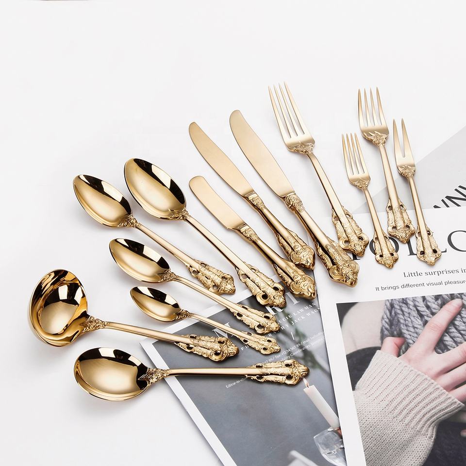 Set di posate di lusso in acciaio inossidabile 18/10 placcato oro, stile barocco reale vintage, con manico dorato, per matrimoni