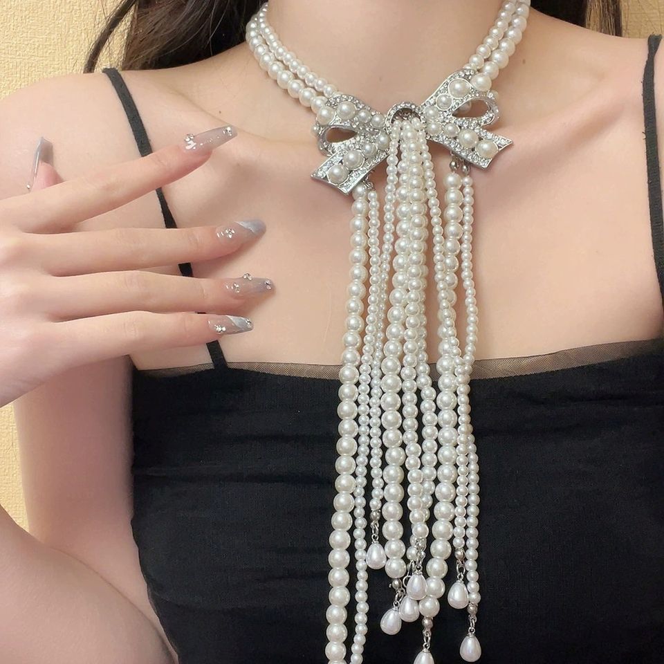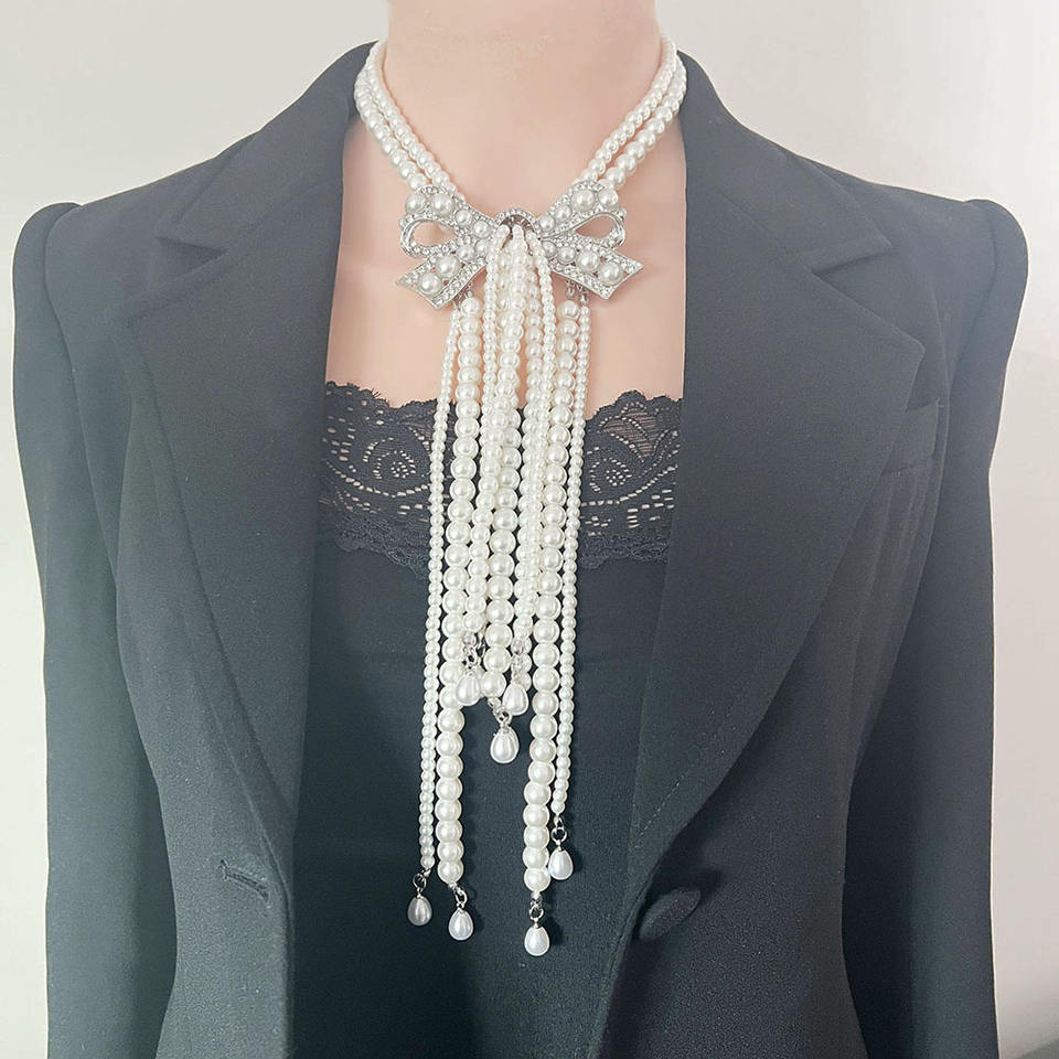 Barocco alla moda lungo nappine collana con fiocco di perle di lusso a maglie di lusso clavicola accessori per matrimonio e festa