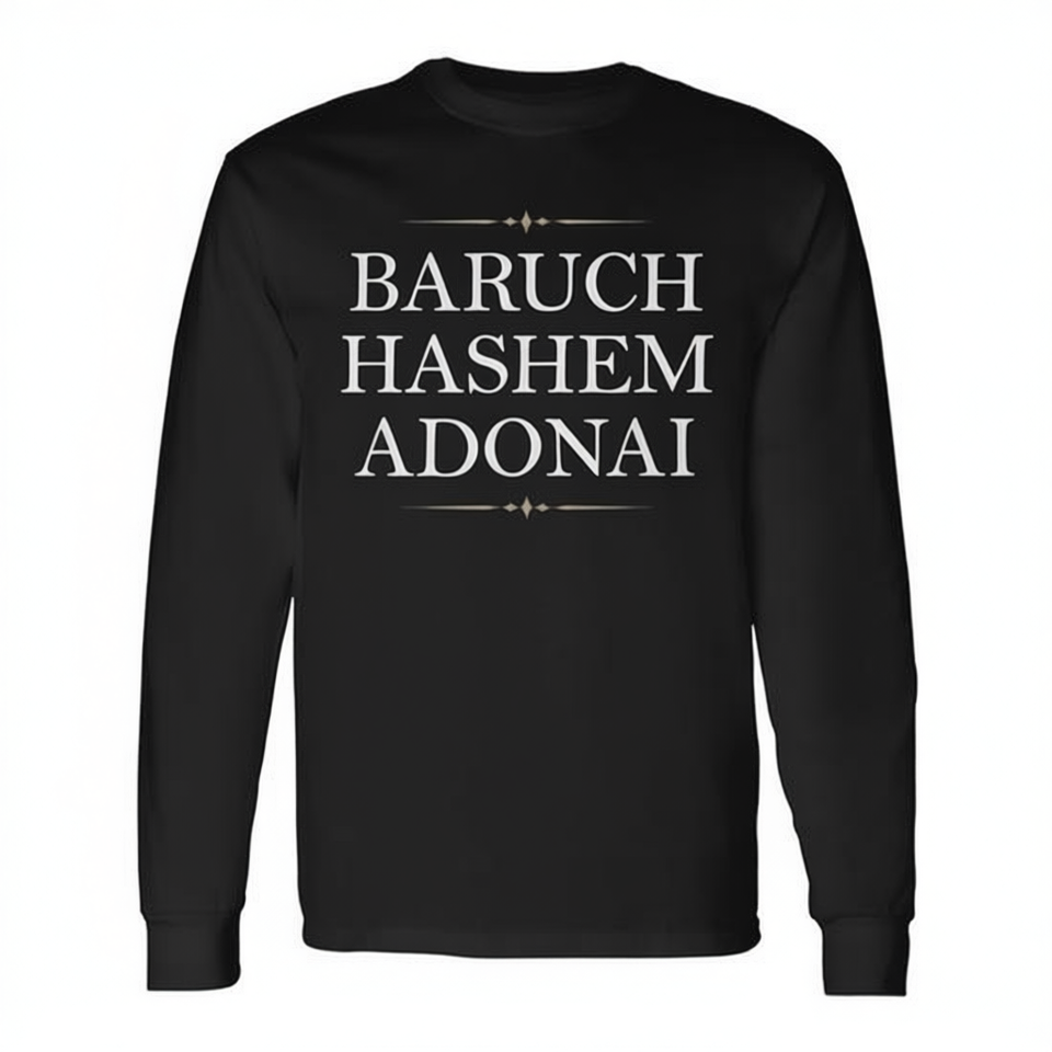 T-shirt promozionale a maniche lunghe con benedizione ebraica cristiana Baruch Hashem Adonai