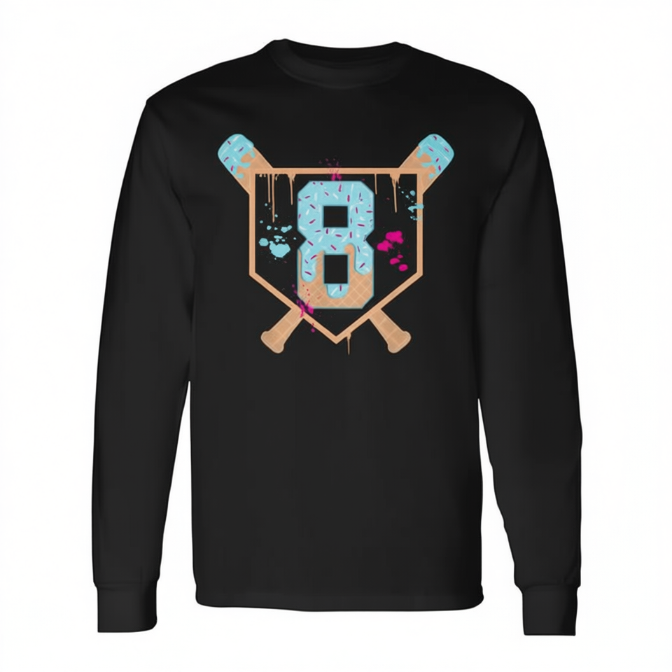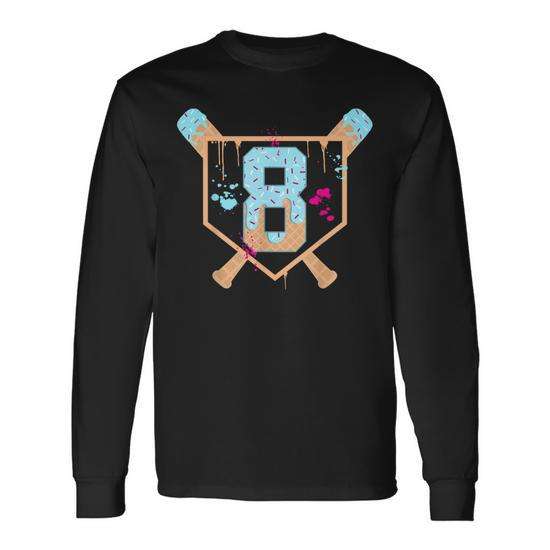 Maglietta a maniche lunghe per bambino di 8 anni con numero 8, design a goccia di gelato, girocollo, stampa digitale, sportiva