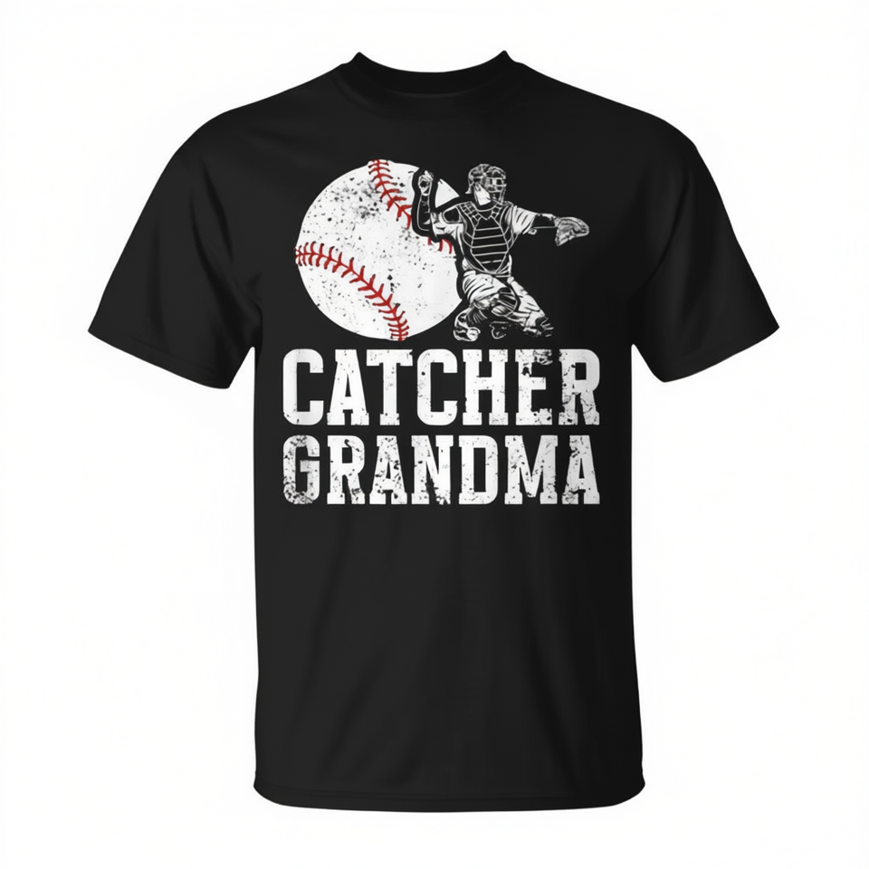 T-shirt da baseball per nonna con grafica e testo a tema catcher
