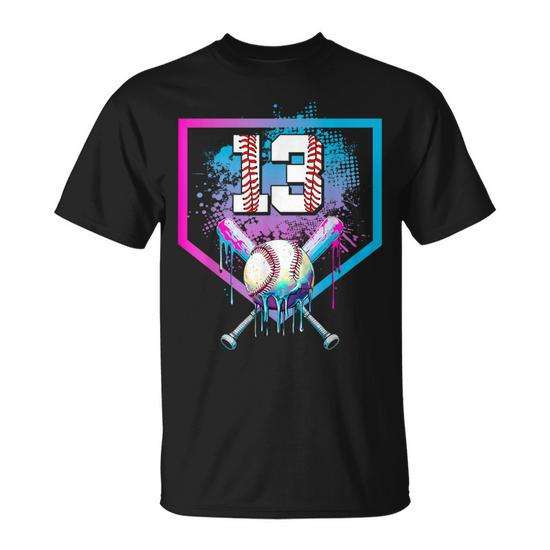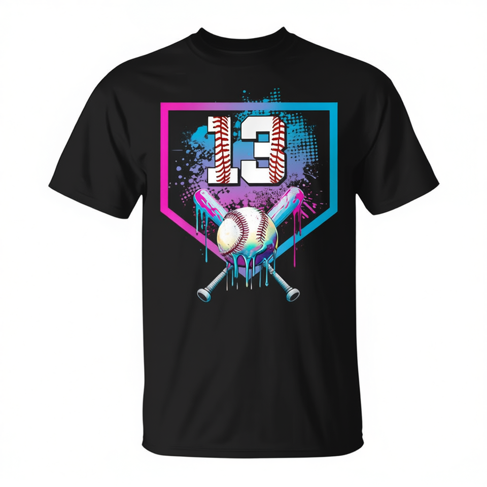 T-shirt con stampa digitale a maniche corte per ragazzo, Baseball Drip, 13° compleanno, Home Plate Boy