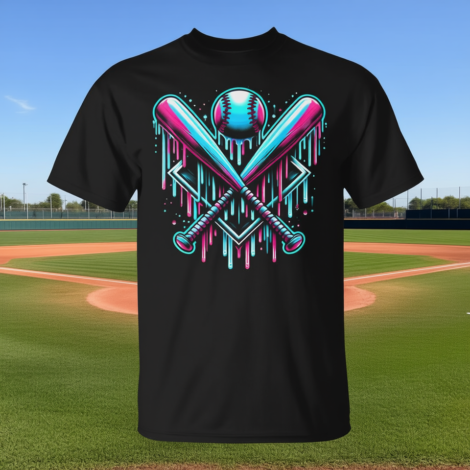 T-shirt Baseball Drip con mazze incrociate e palla per i fan dei giocatori