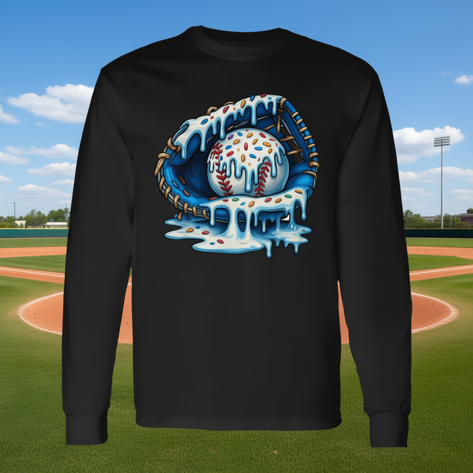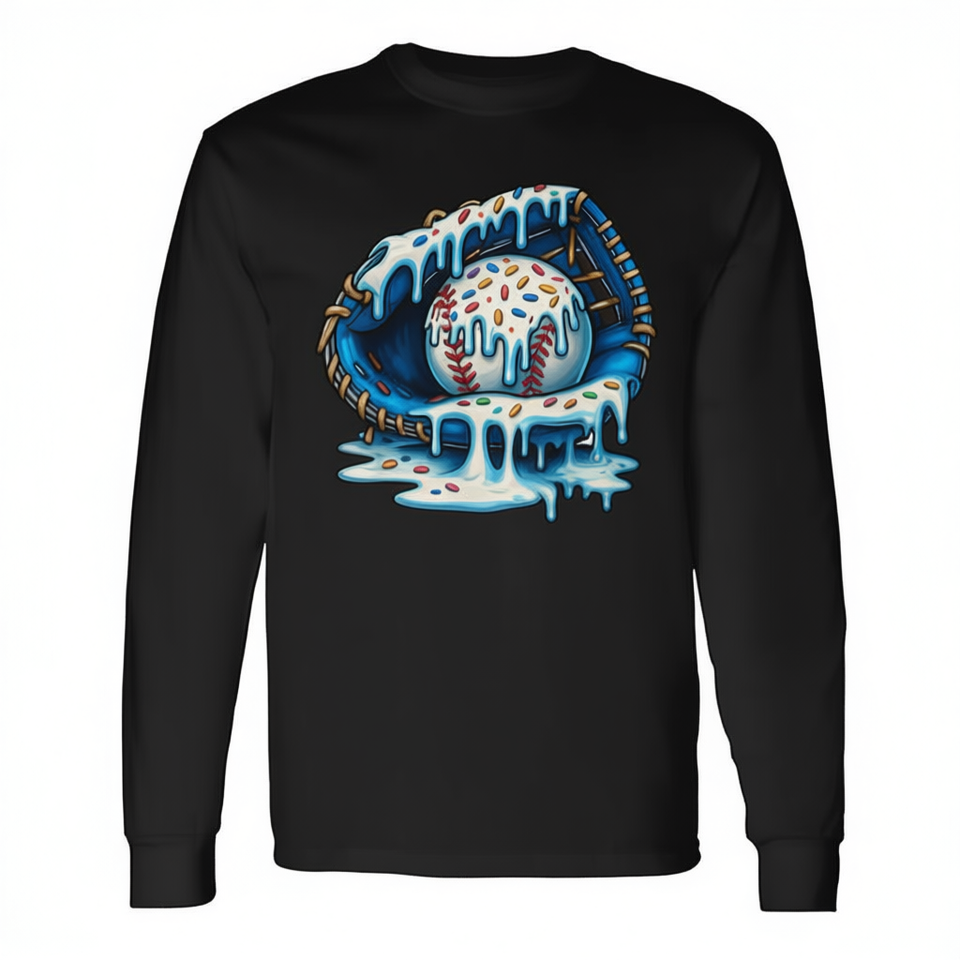 Baseball Drip Ice Cream Sprinkles Glove Long Sleeve T-Shirt Adult Unisex Crew Neck Digital Printing Sports And Games