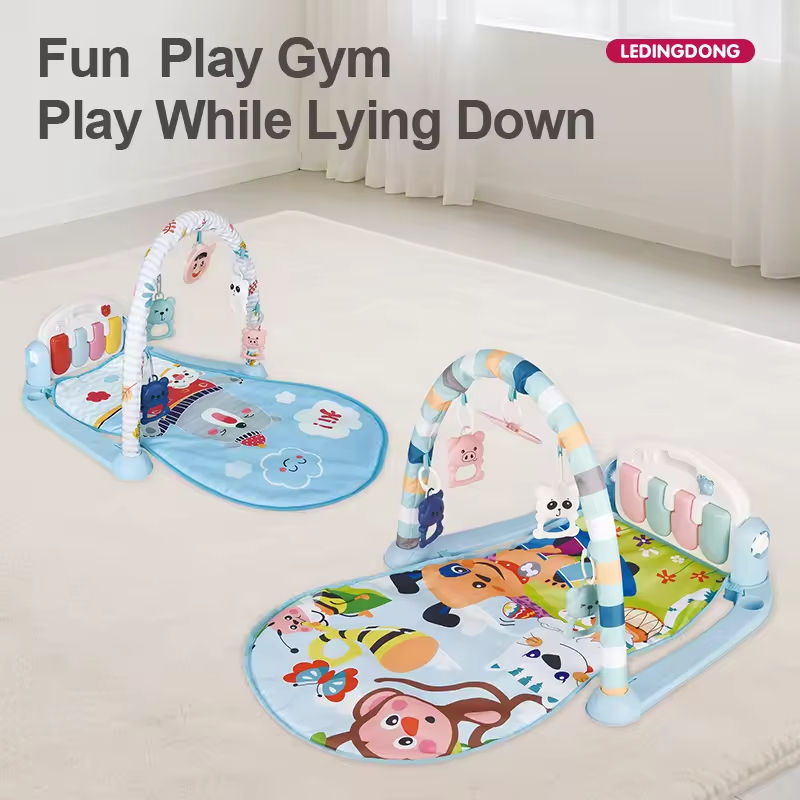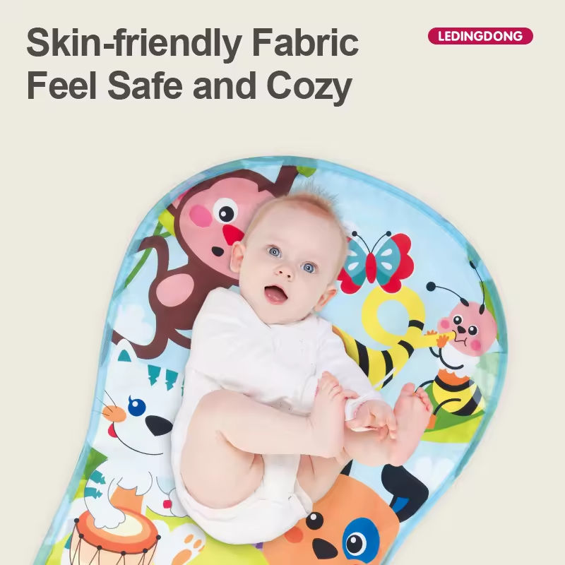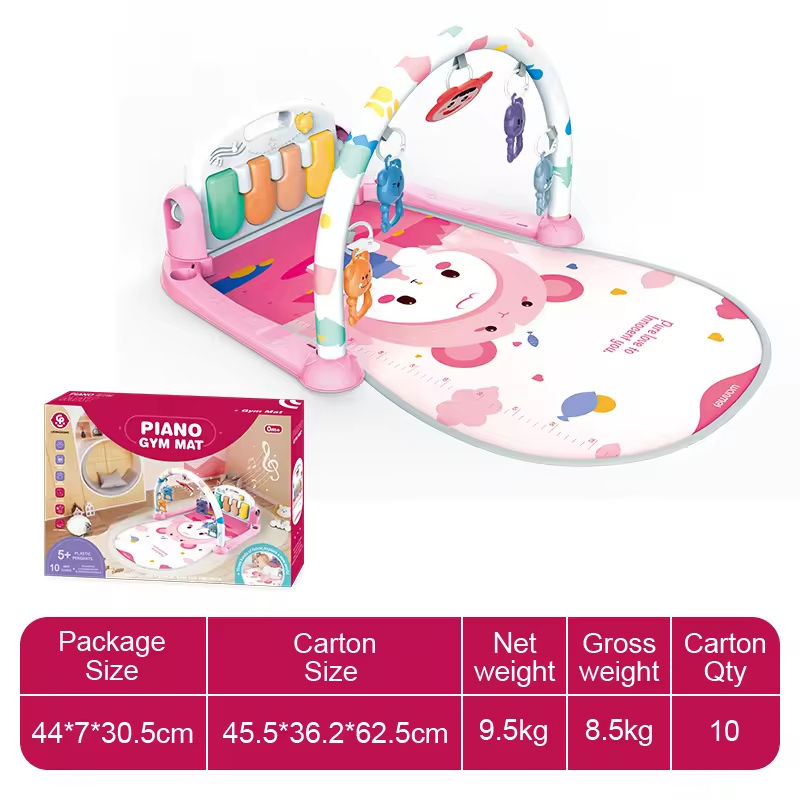 Tappetino da Gioco per Neonati Modello Base Orsetto Rosa con Pianoforte e 5 Giocattoli Sospesi Staccabili