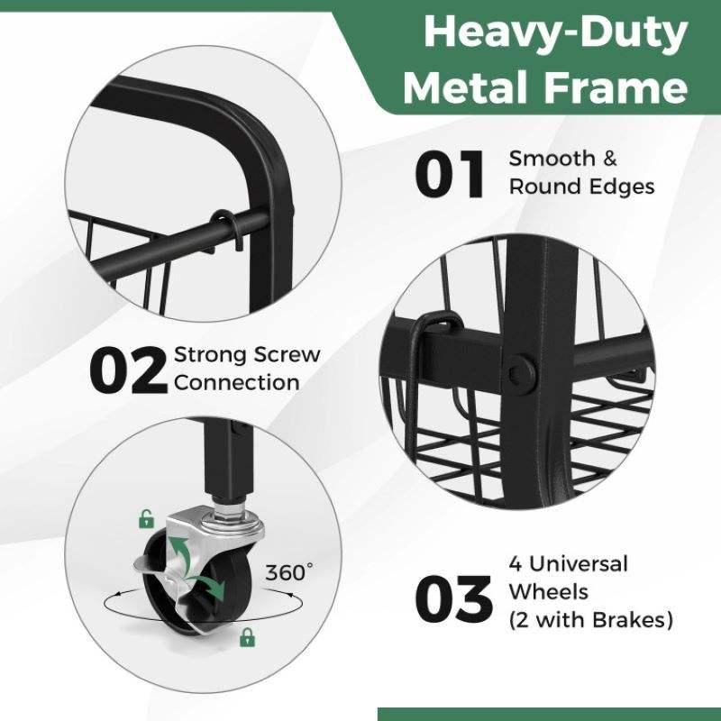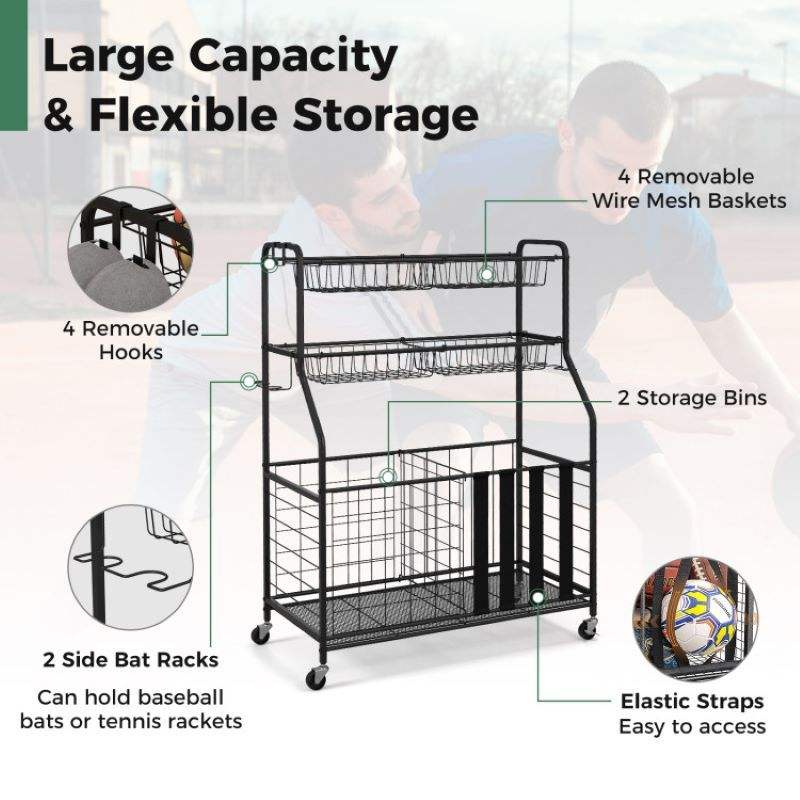 Basketball Organizer Utility Rack with Hooks & Baskets Sports Equipment Storage Solution