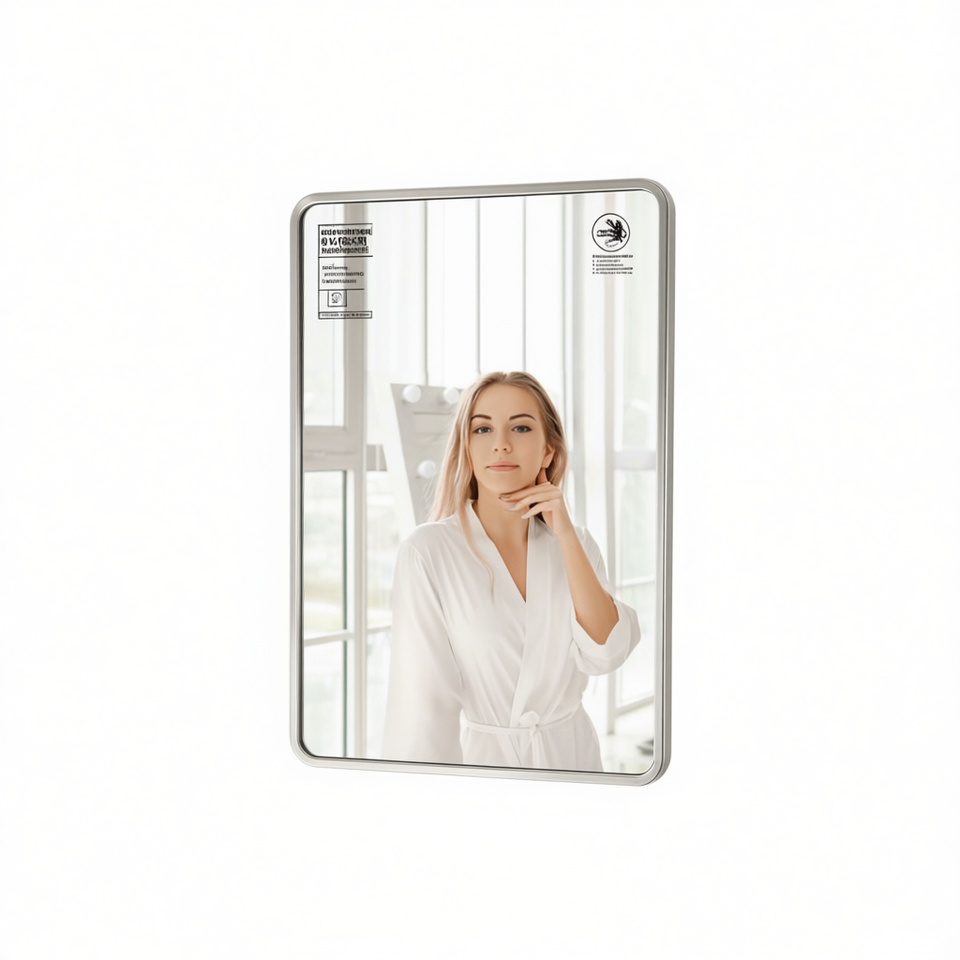 Specchio da Bagno 24 X 36 Pollici Quadrato con Cornice in Lega di Alluminio Antiappannamento Montato a Parete Design Minimalista Finitura Argento