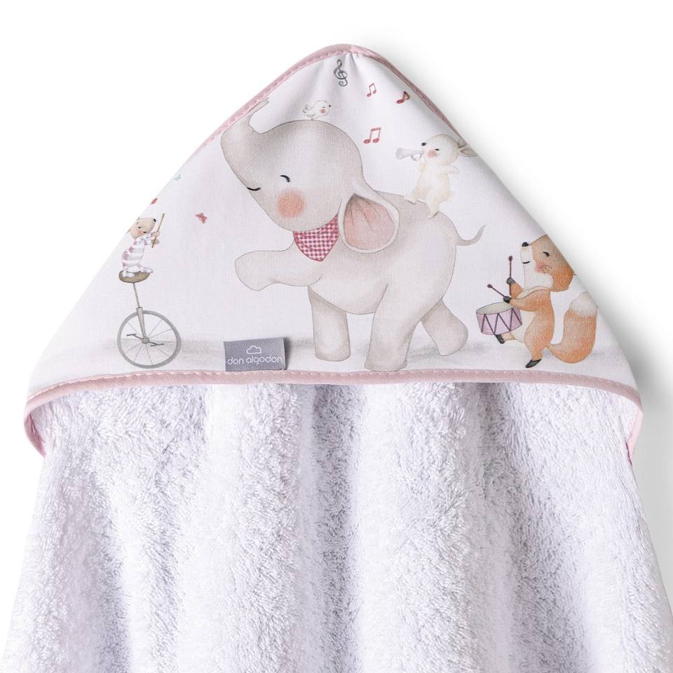 Asciugamano da Bagno per Uso Domestico 1x1 MT. Mod. Music and Friends Cotone ipoallergenico stampato con motivo a cartoni animati colore rosa per neonati