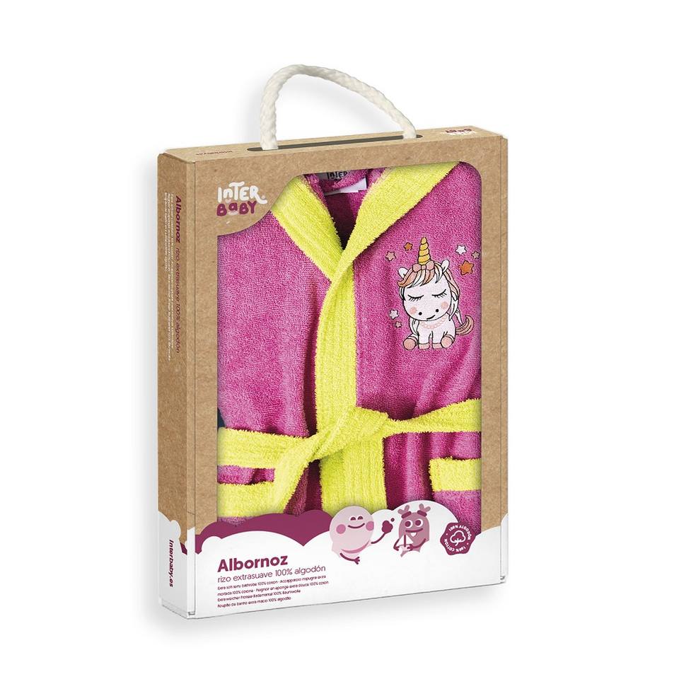 Accappatoio per Bambini Taglia S 6-8 in Cotone Stampato Colore Fucsia in Confezione Regalo per Uso in Bagno