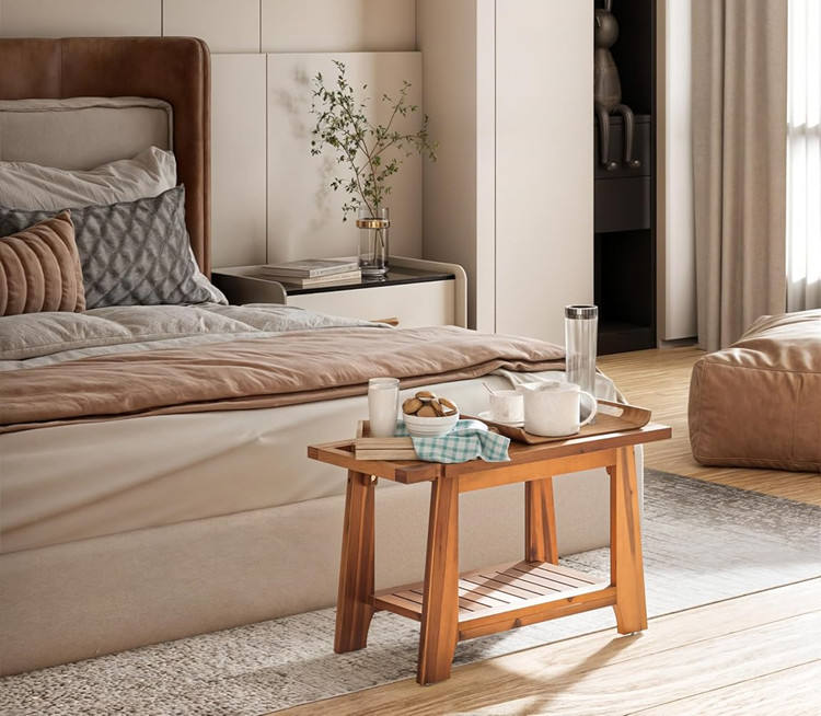 Bagno sgabello porta asciugamani mensola impermeabile in legno di Teak massello angolo panca per rasatura gambe