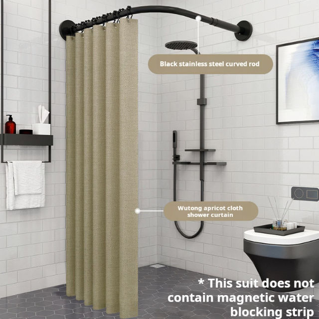Bathroom Blocking Polyester 200*200cm Waterproof Shower Curtain Magnetic Blue Curved Corner Shower Curtain Rod