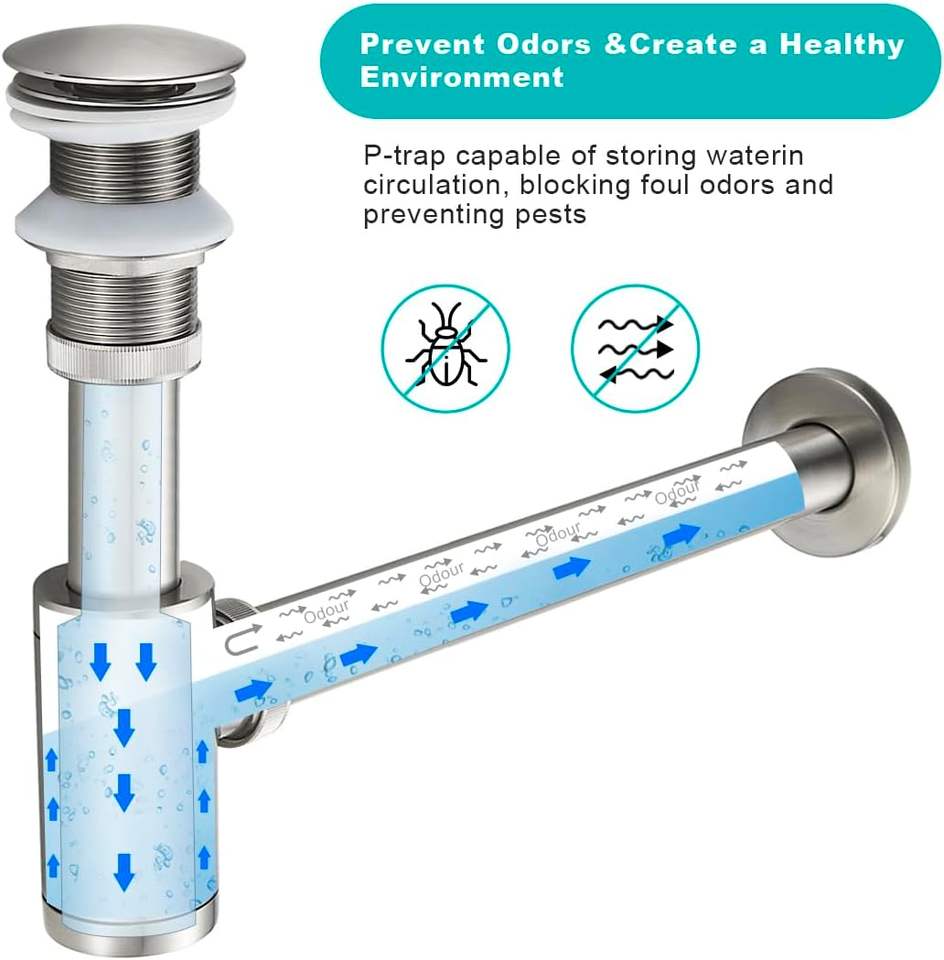 Kit di Scarico per Lavabo con Sifone a Bottiglia Regolabile, Design Moderno Cromato, Ecologico e Anticorrosione per Bagno