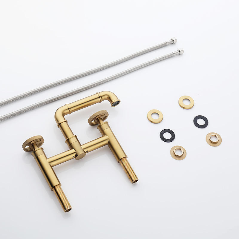 Bathroom Deck Mounted Sink Taps 2 Hole Dual Handle Faucet Modern Chrome Gold Basin Mixer