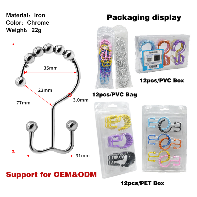 Ganci Metallici a Doppia Faccia per Tende da Bagno, Ganci per Tende Doccia