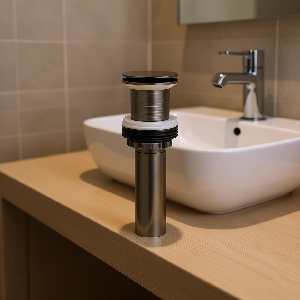 Bathroom Sink Drain Pop Up Stopper 2.8 Inch Brushed Stainless Steel Vessel Lavatory Drain With Threaded Connection Modern Design