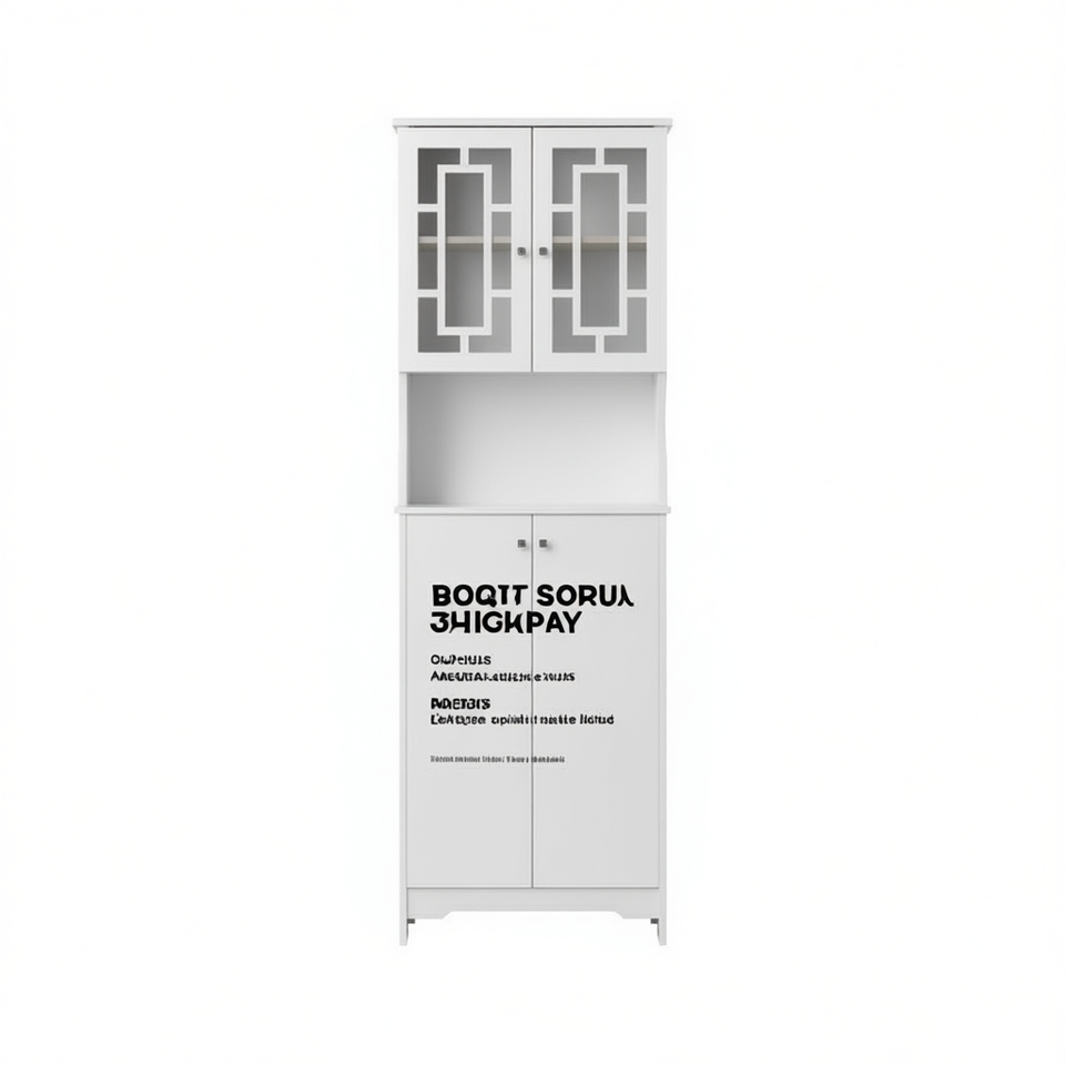 Mobiletto Salvaspazio per Bagno Sopra il WC, 2 Ripiani in Vetro, Montaggio a Parete, Design Minimalista Bianco