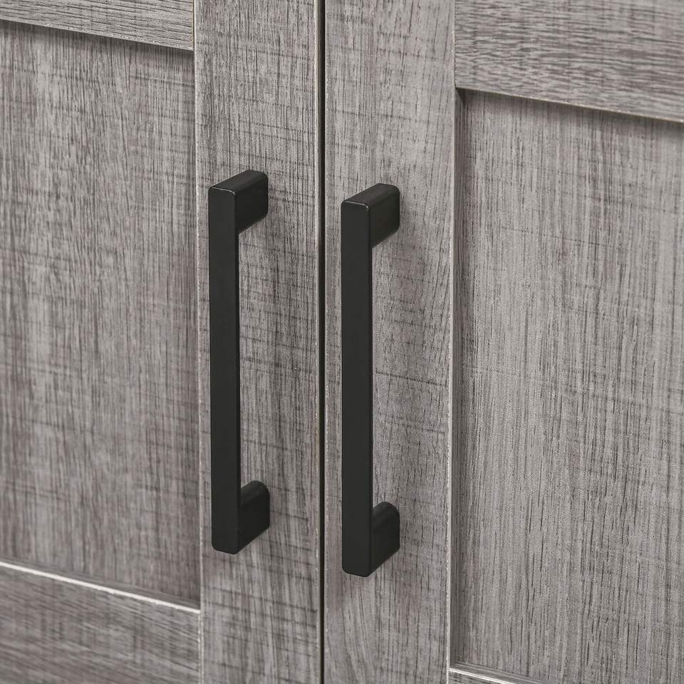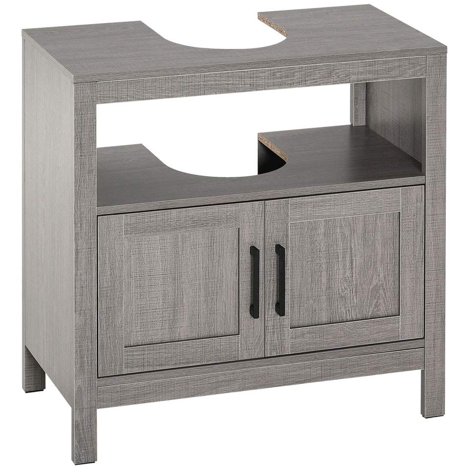 Mobile Bagno Grigio con Lavabo a Colonna, Armadietto Contenitore a 2 Ante e Ripiano Aperto