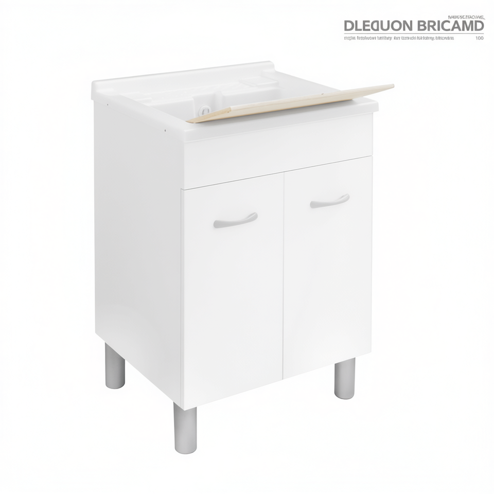 Mobile Bagno con Lavabo e Armadietto in Melamina, Larghezza 60 cm, Profondità 50 cm, Finitura Bianca