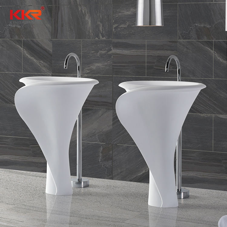 Bathroom Washbasin Flower Shaped Freestanding Basin Solid Surface Stone Standing Sink