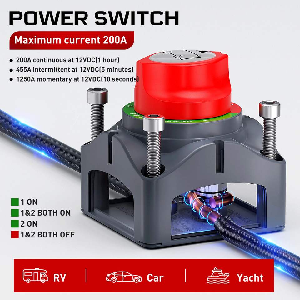 Interruttore di disconnessione della batteria 12V, isolatore batteria 12V-48V interruzione interruttore principale 275 ampere (On/Off)