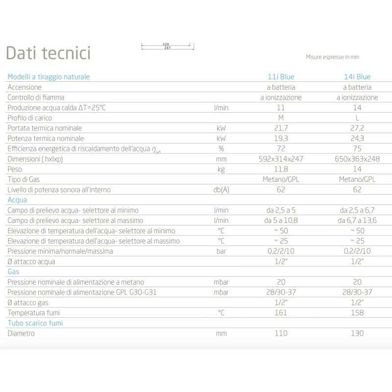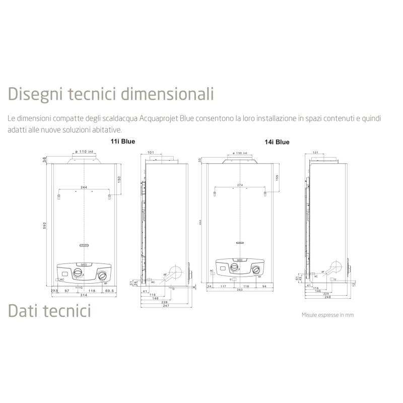 Scaldabagno a gas istantaneo Baxi Acquaprojet 14i Blue GL a camera aperta, a basso NOx, ErP, GPL