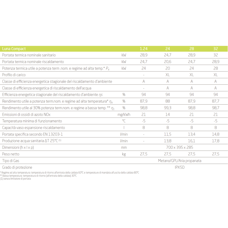 Caldaia a Condensazione Baxi Luna Compact 28 kW ErP per Sistemi HVAC Domestici, Disponibile a Metano o GPL