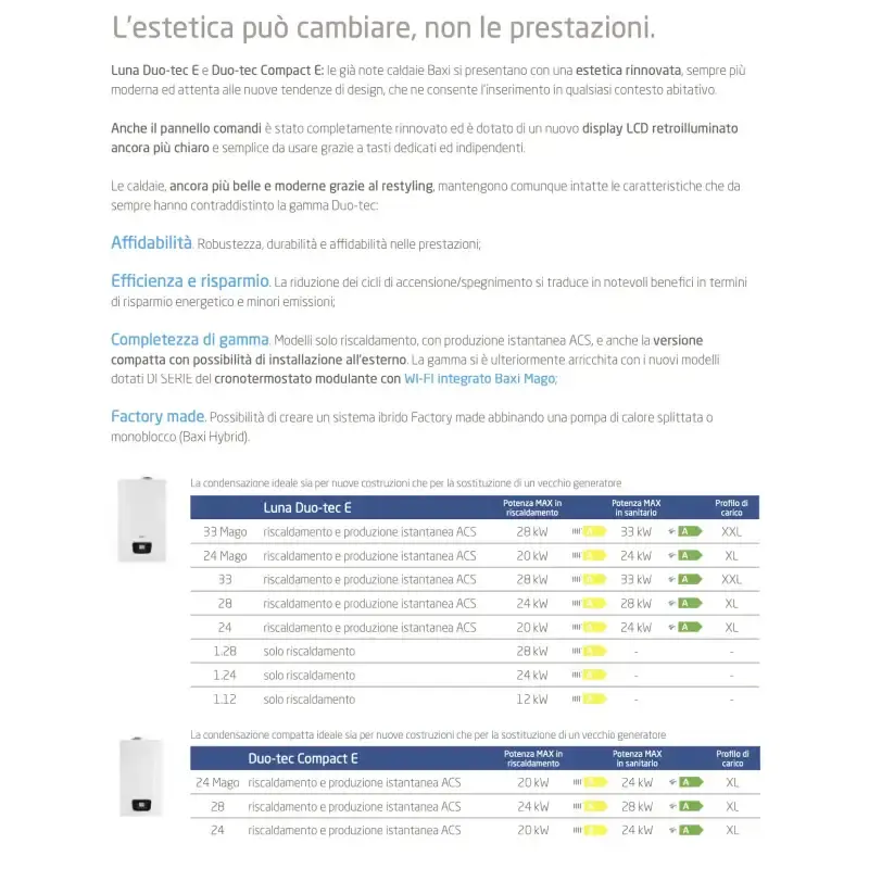 Caldaia a Condensazione Baxi Luna Duo-Tec E 24 KW ErP per Sistema HVAC Domestico, per Metano o GPL