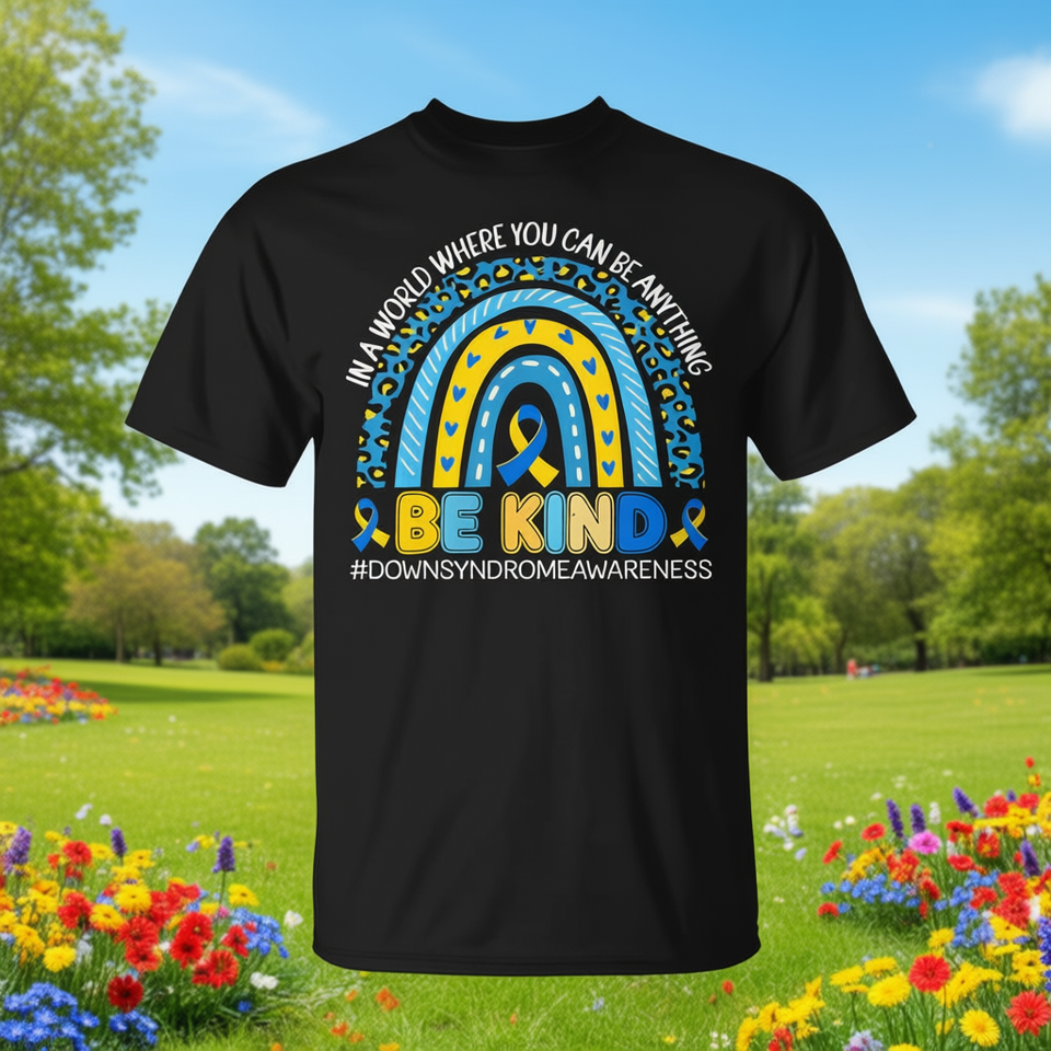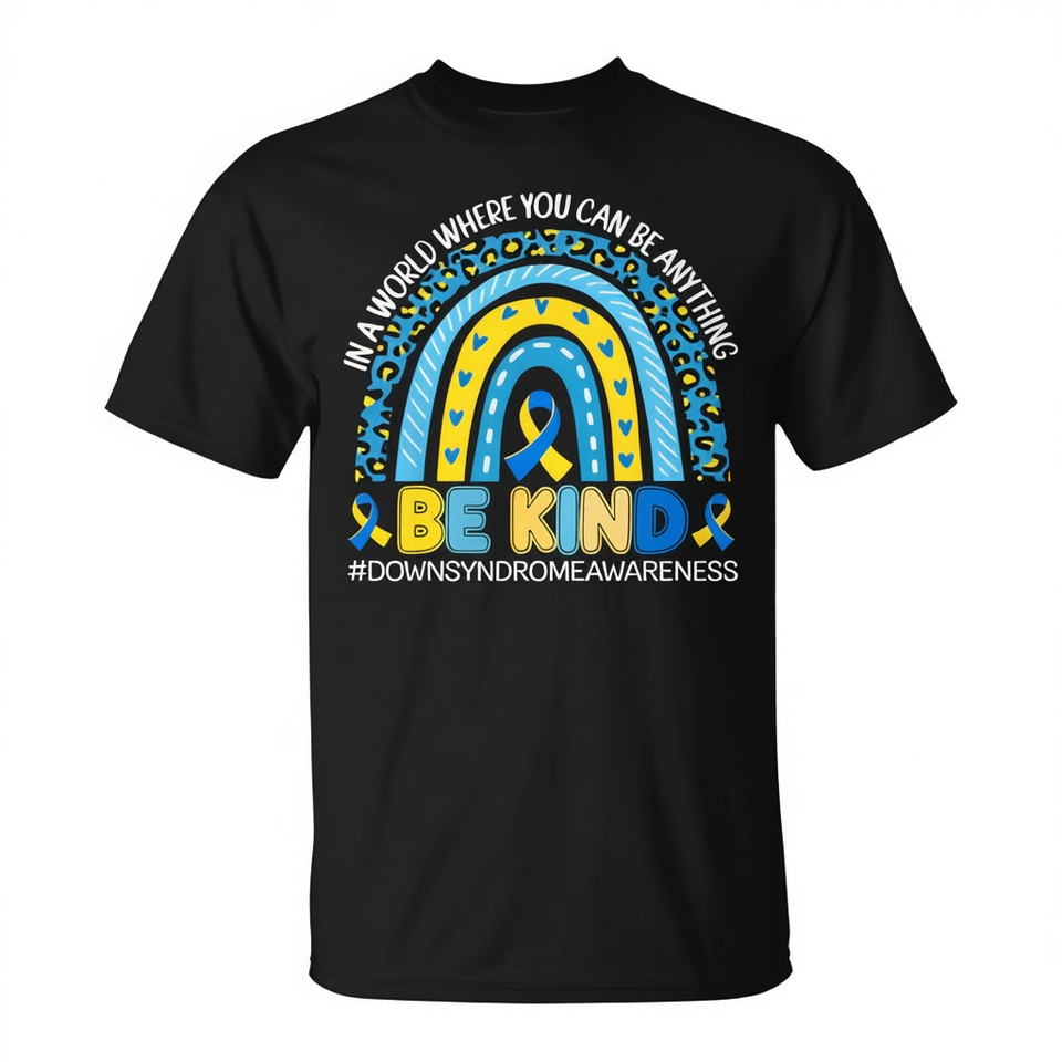 T-shirt Be Kind Rainbow per la sensibilizzazione sulla sindrome di Down per ragazze