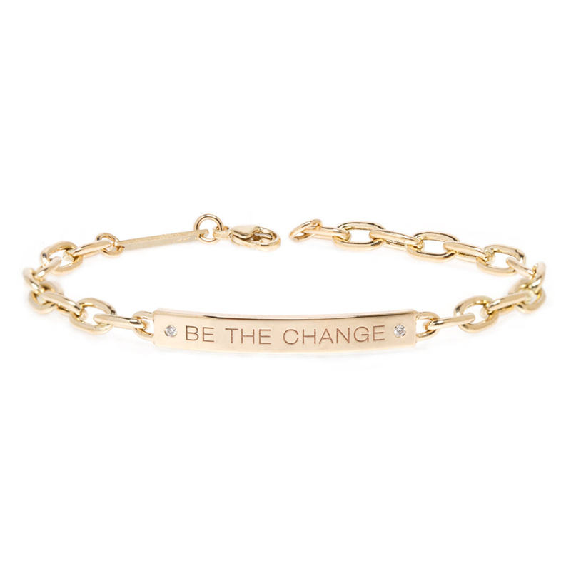 Bracciale con Maglie Ovali 'Be the Change' Placcato Oro, Incisione Personalizzata su Barra Quadrata in Acciaio Inox, Gioiello Ispirato con Citazione per Donne
