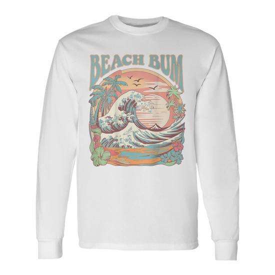 T-shirt a maniche lunghe Beach Bum Surf Wave Vintage Tropical Sunset