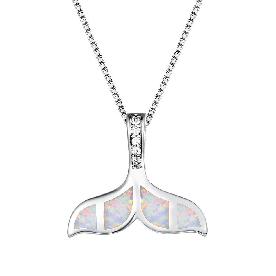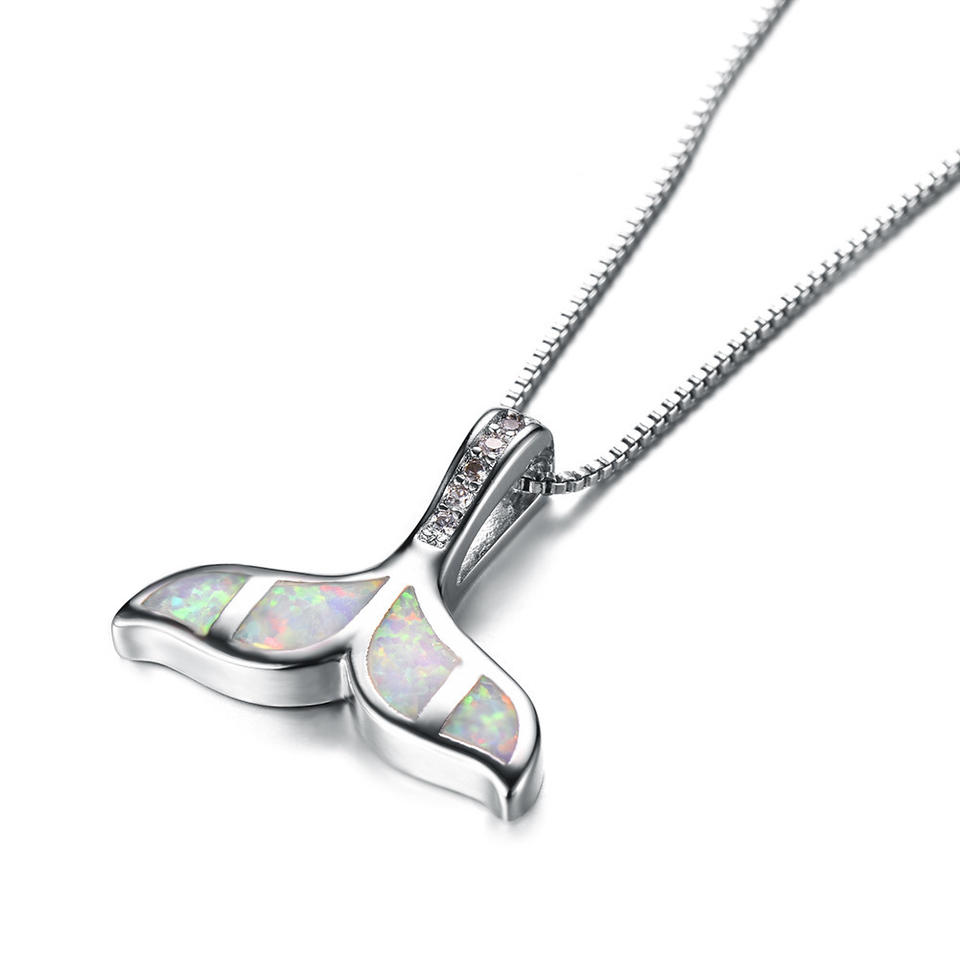 Gioielli mare oceano argento placcato blu opale coda di balena collana ciondolo sirena coda coda