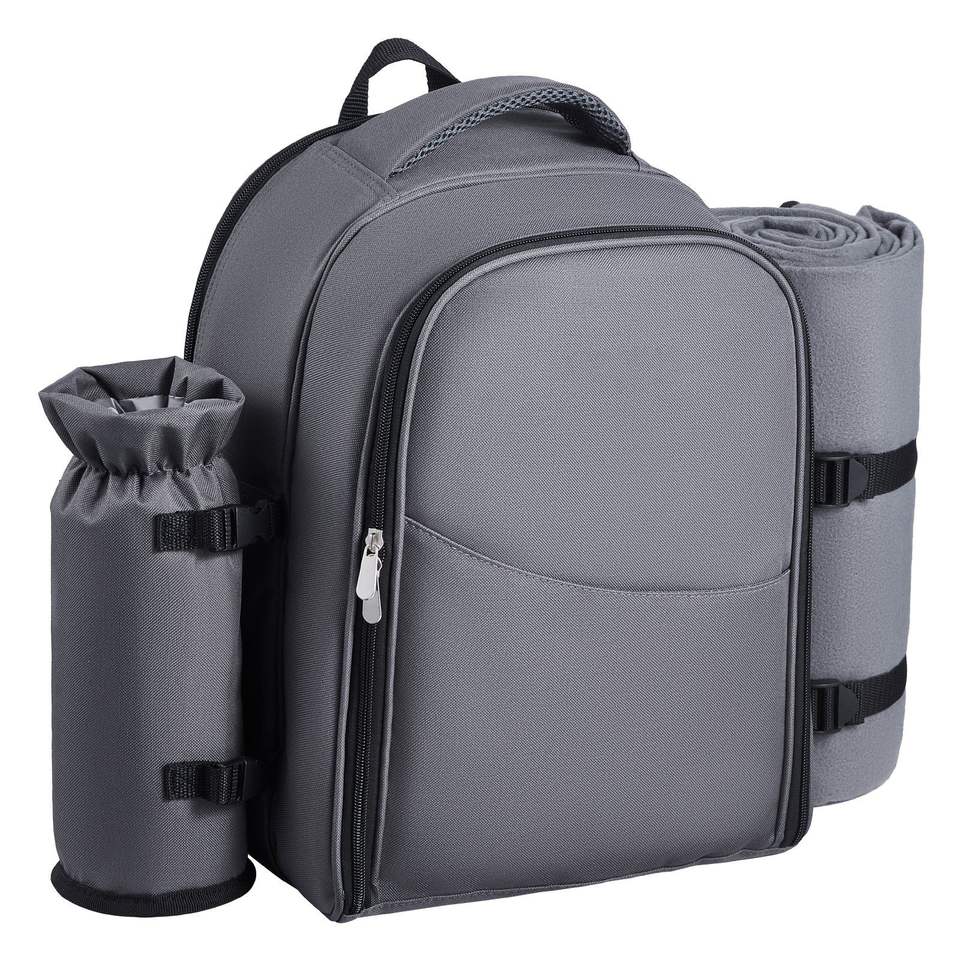 Beach Picnic Backpack Cooler Bag for 2 Persons Grey with Compartment