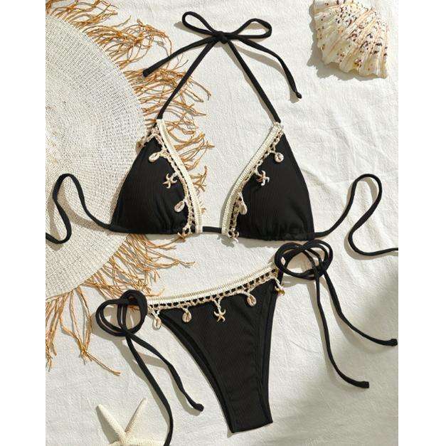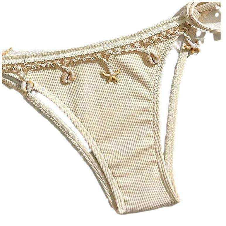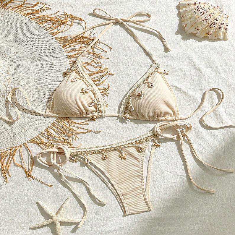 Bikini da donna blu cielo Beachwear Nice Shell Three-Point Formula Open Back Personalizzato 2026 Hot Sandbeach