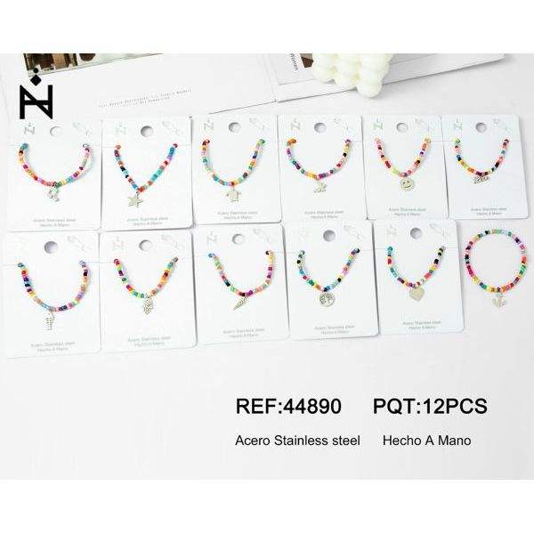 Bracciale con Ciondolo in Acciaio Inossidabile Color Acciaio Elastico con Perline di Semi