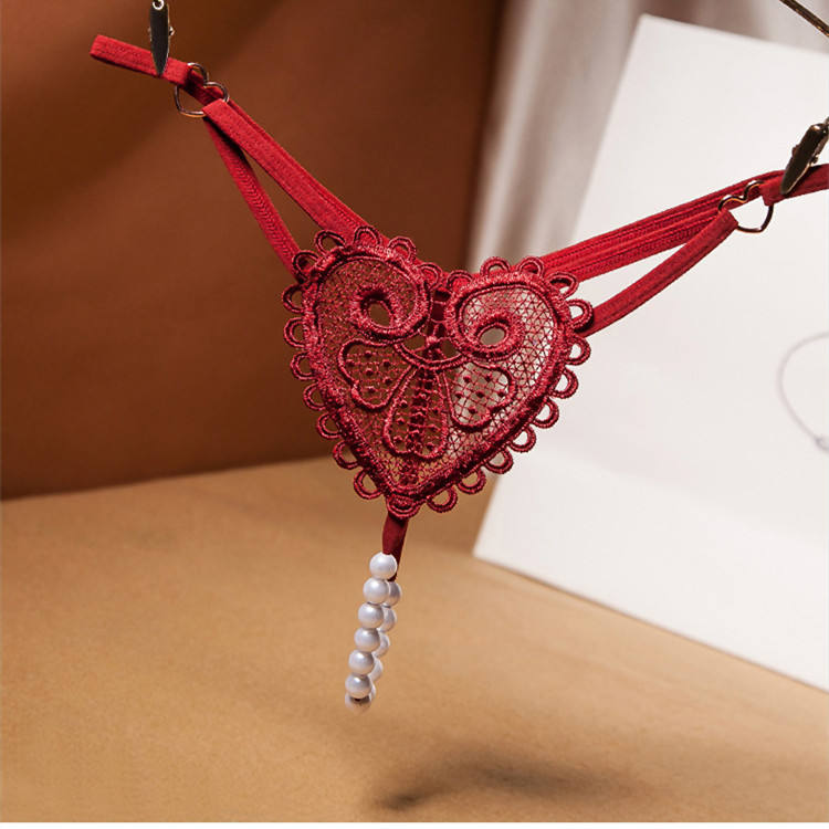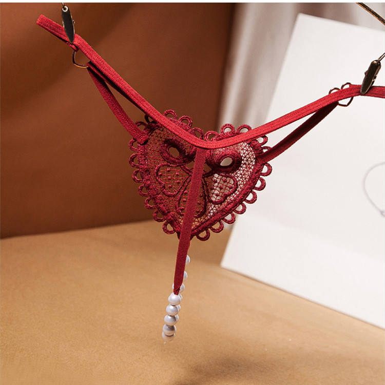 Perizoma T-back con perline da donna Biancheria intima sexy da donna con ricamo con perla Massaggio mutandine sexy