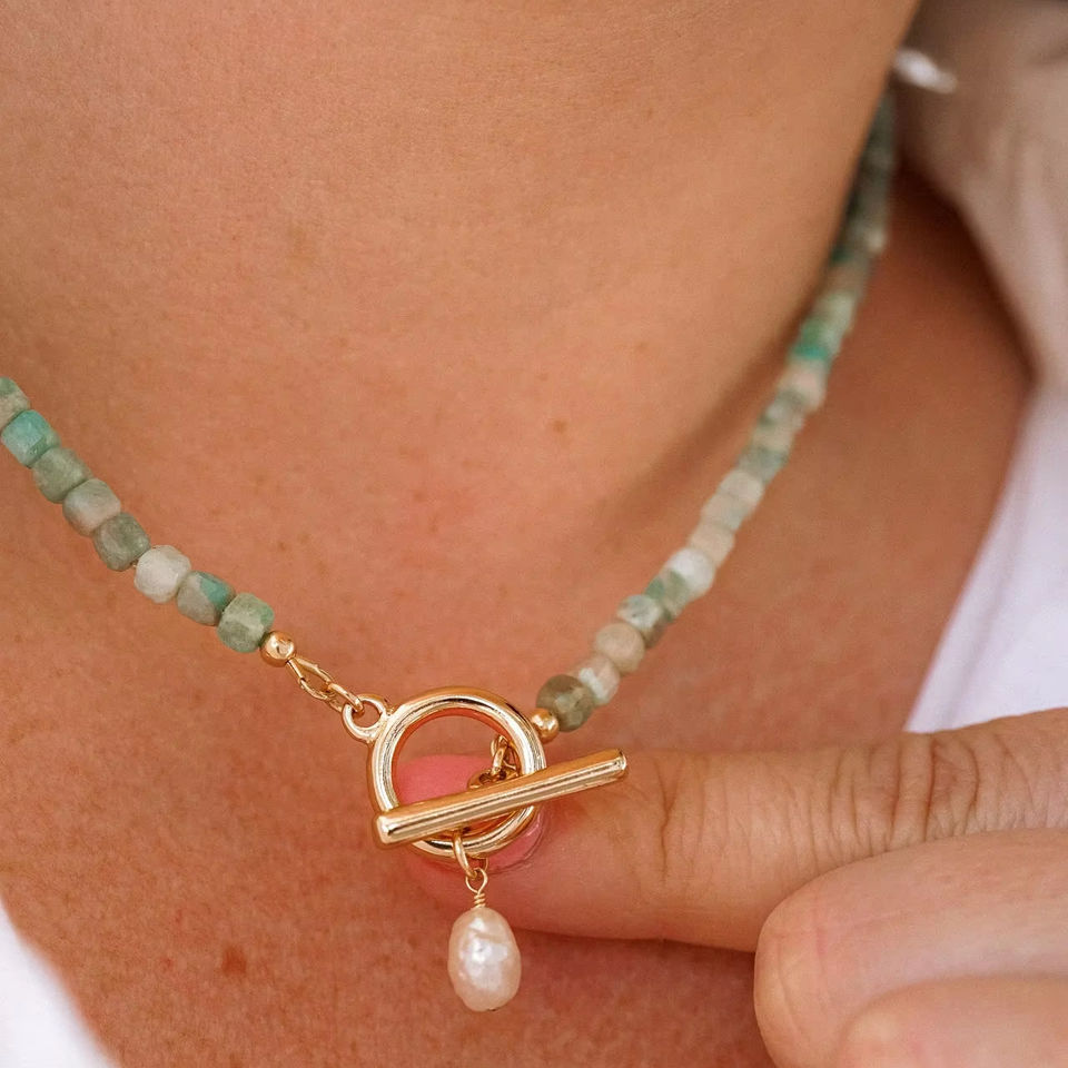 Collana di pietre preziose in rilievo collana di perle a levetta collana di moda Amazonite girocollo dichiarazione regalo migliore amico