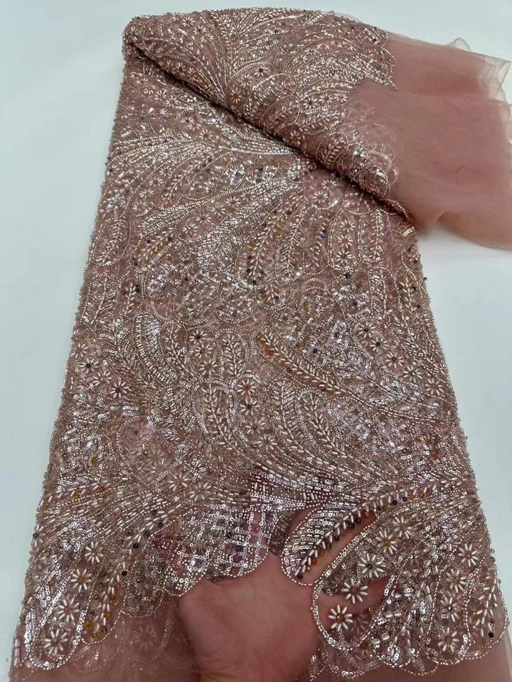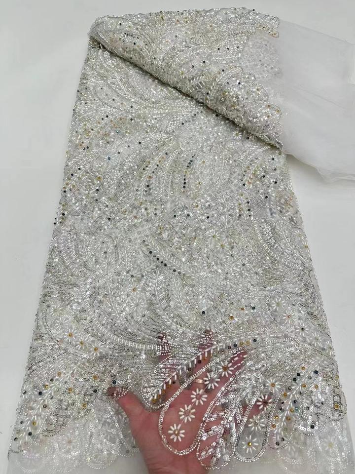 Beads Lace Fabric Sliver Swarovski Crystal Lace Fabric
