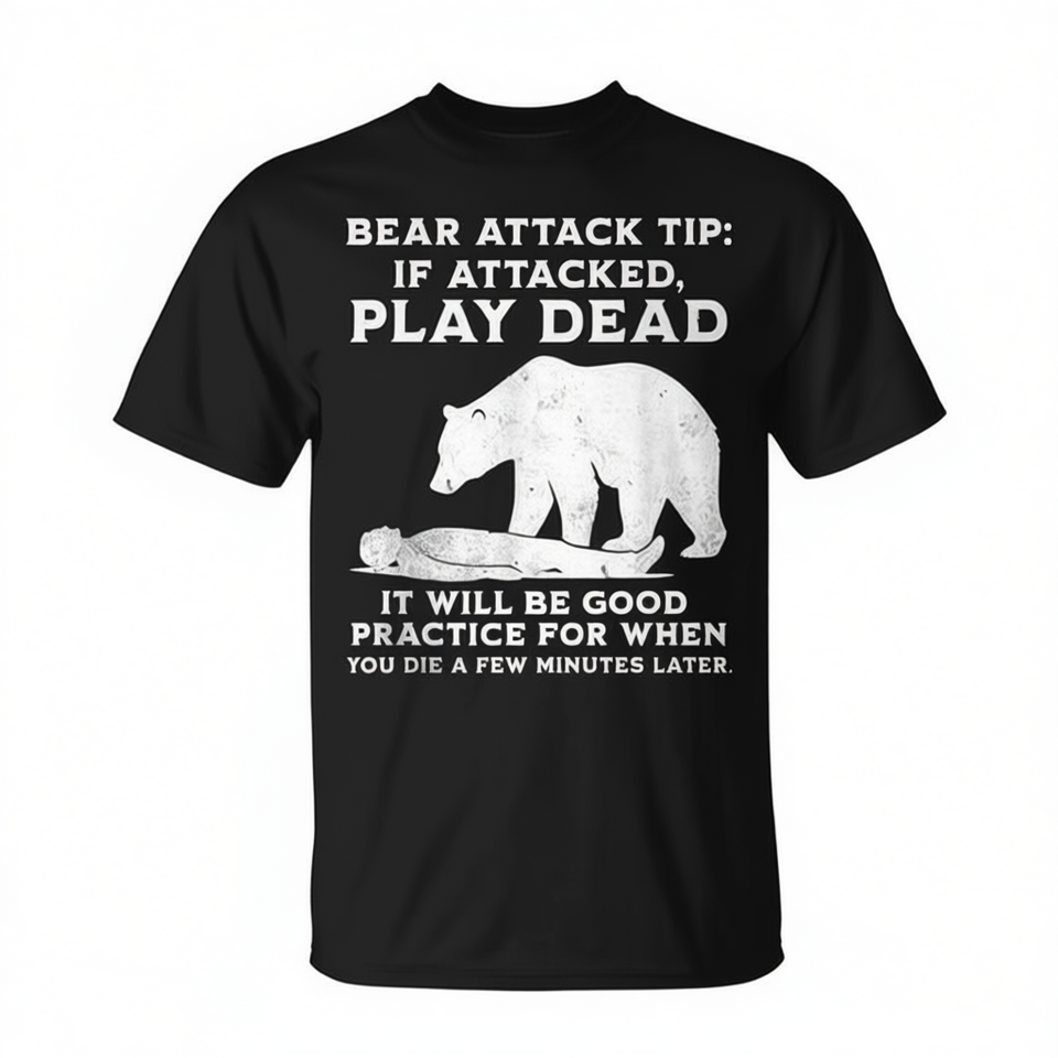T-shirt da trekking sarkastica Bear Attack Tip per donna, nera, taglia grande