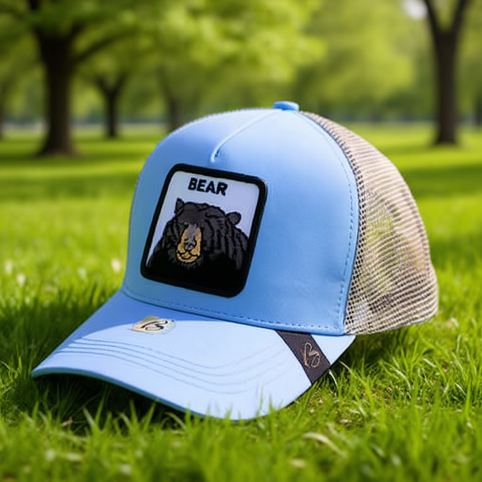 Cappello trucker con ricamo orso, 6 pannelli, regolabile, in rete, per adulti, unisex, primavera estate, casual, in poliestere e cotone