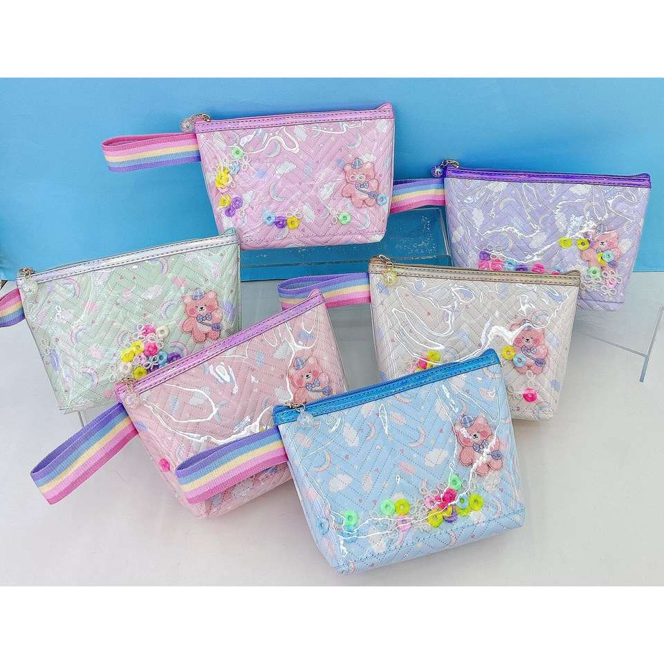 Bear Pattern Hexagonal Cosmetic Bag for Women Q02-18487 Stylish Elegant Travel Organizer Portable Fashionable Makeup Case Fabric