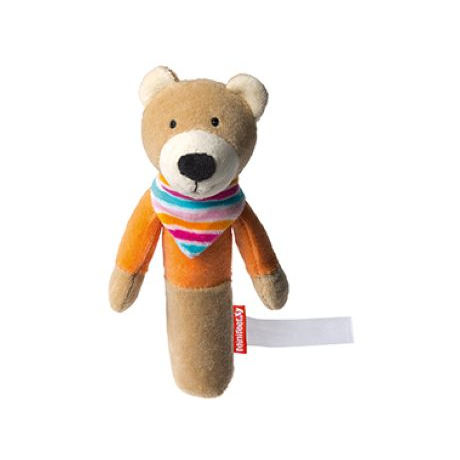 Bear Rattle Toy for Baby Soft Plastic and Beech Wood with Squeaker Function and Musical Feature Cute Animal Shape