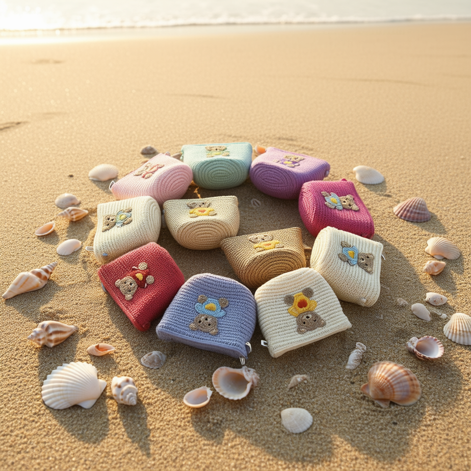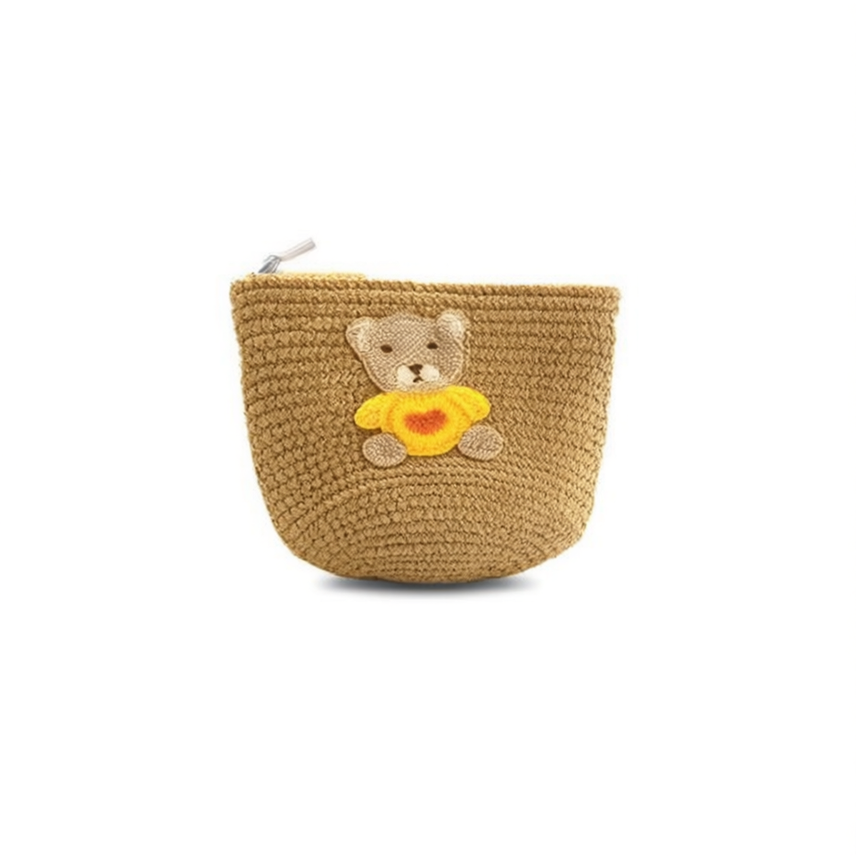 Borsa di paglia a forma di orso 12x14cm, mini accessorio da spiaggia con design orsetto lavorato a maglia