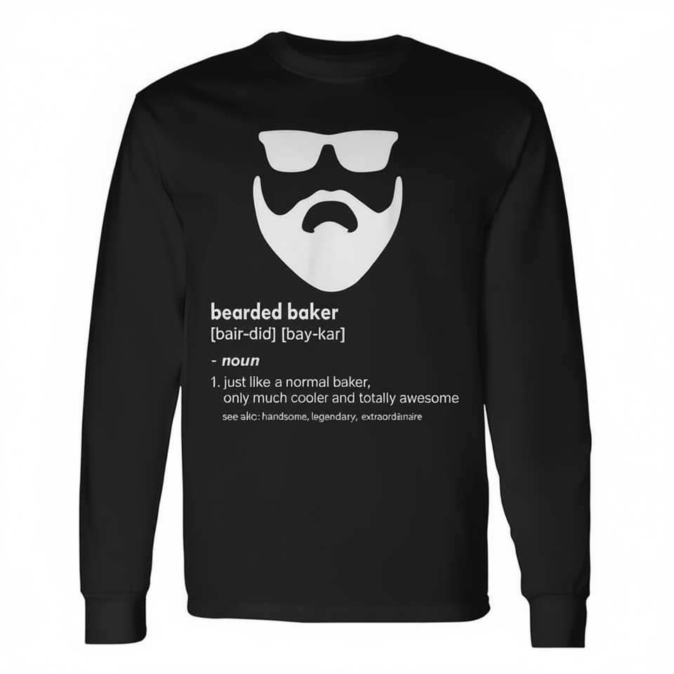 T-shirt a maniche lunghe Bearded Baker nera, divertente maglietta da cuoco, abbigliamento casual da uomo