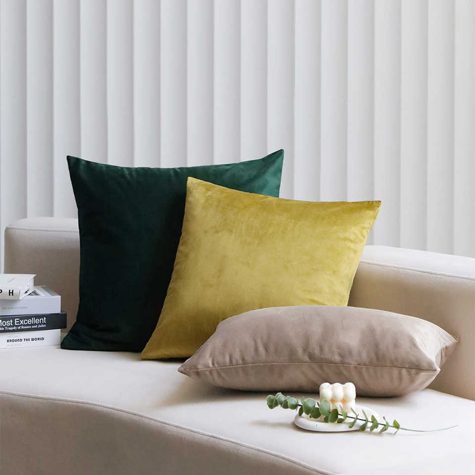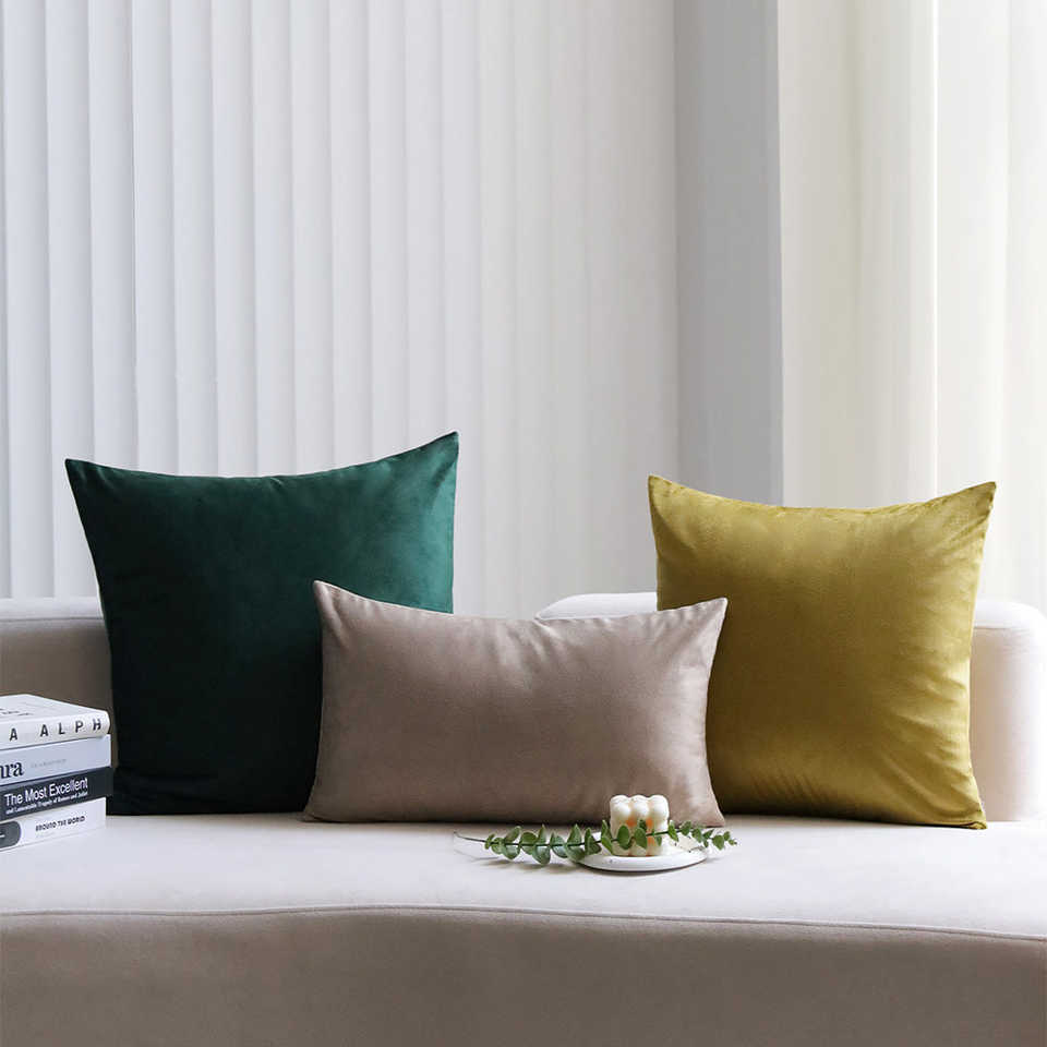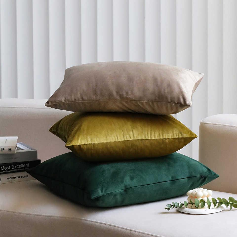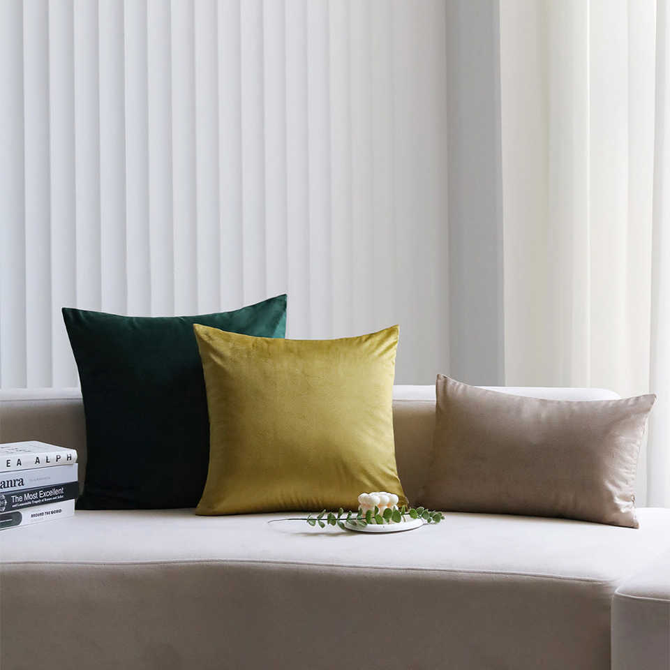 Bellissimo Set di 3 Cuscini Decorativi Coordinati in Velluto, Fantasia a Quadri, Misure e Colori Assortiti per Uso Domestico con Imbottitura