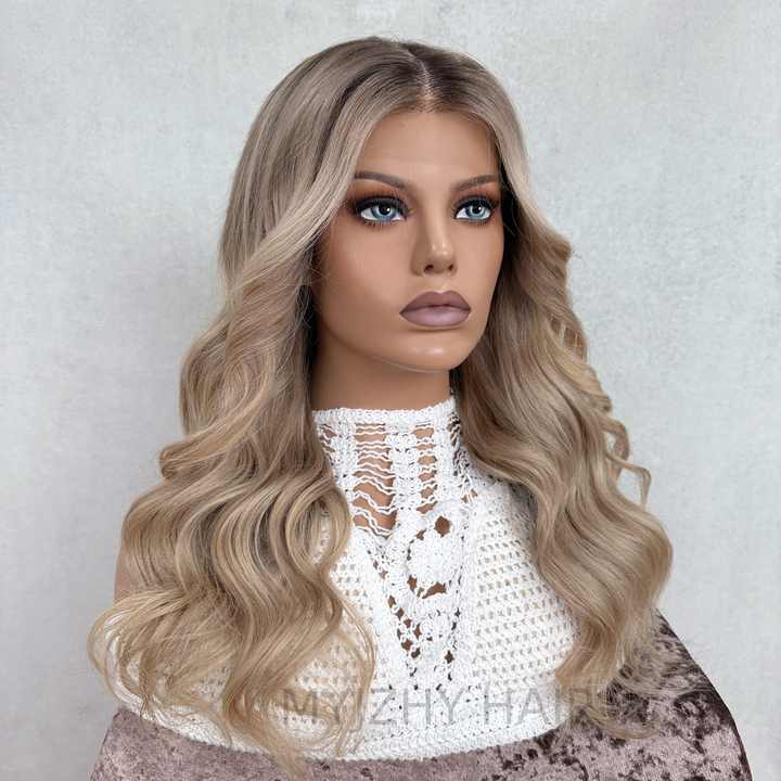 Beautiful Ash Blonde Highlights Human Hair Wigs European Virgin Remy Cuticle Aligned Glueless Lace Front Wigs Double Drawn Wigs