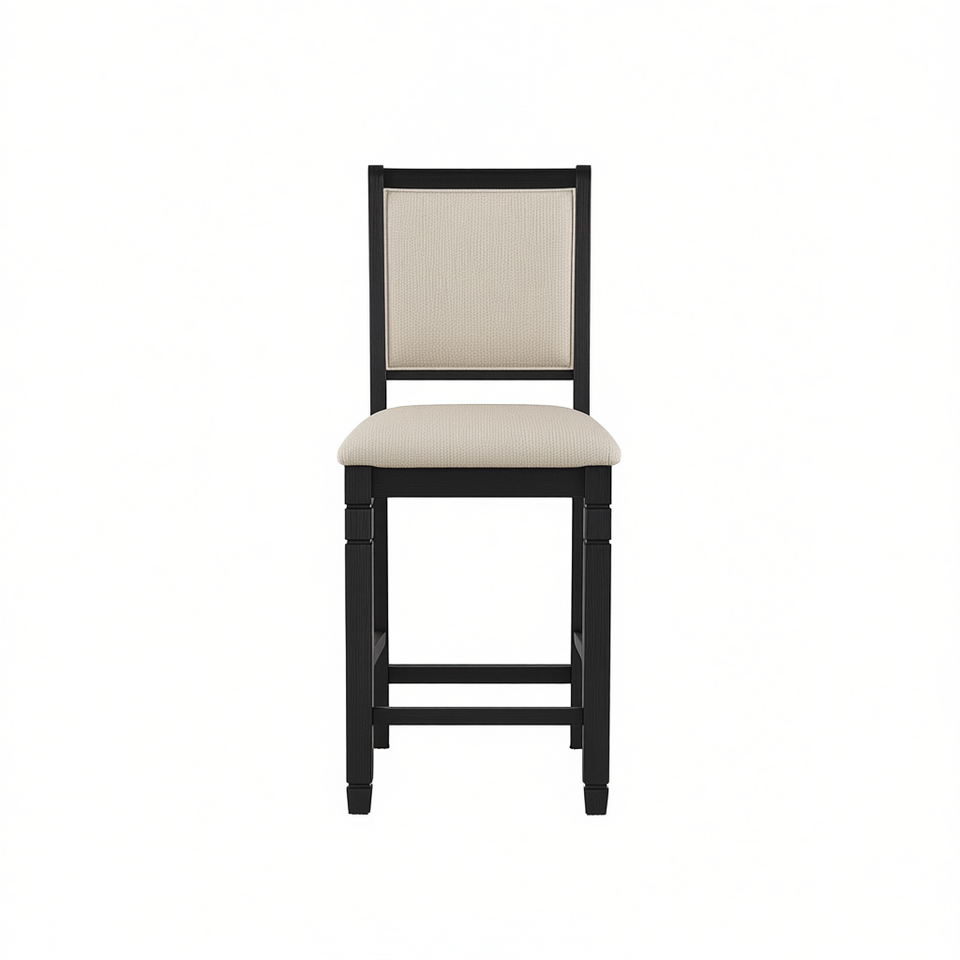 Sedia da Pranzo in Legno Altezza Bancone, Finitura Nera, Rivestimento in Tessuto Testurizzato Beige, Design Moderno e Tradizionale, Arredamento per la Casa