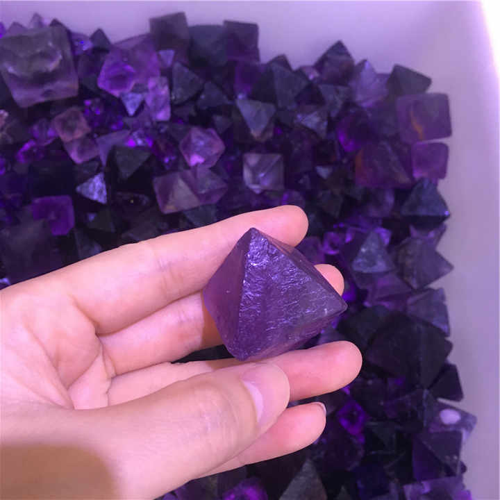 Product Name:Beautiful Natural Rock Purple Fluorite Quartz Crystal Octahedron Stone