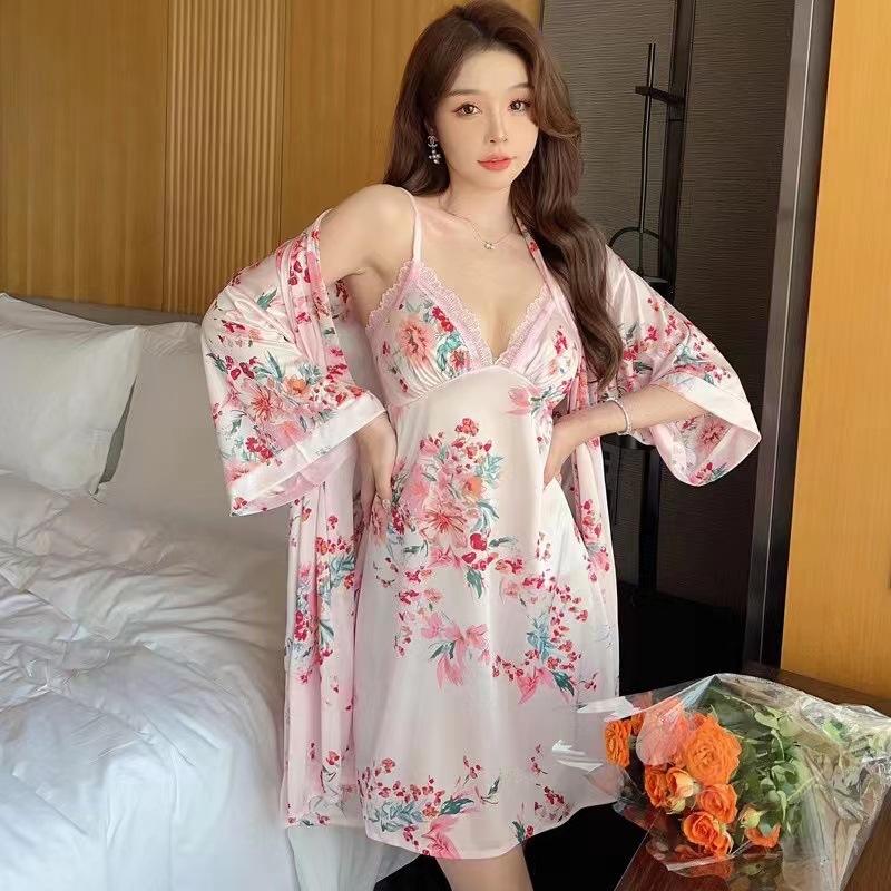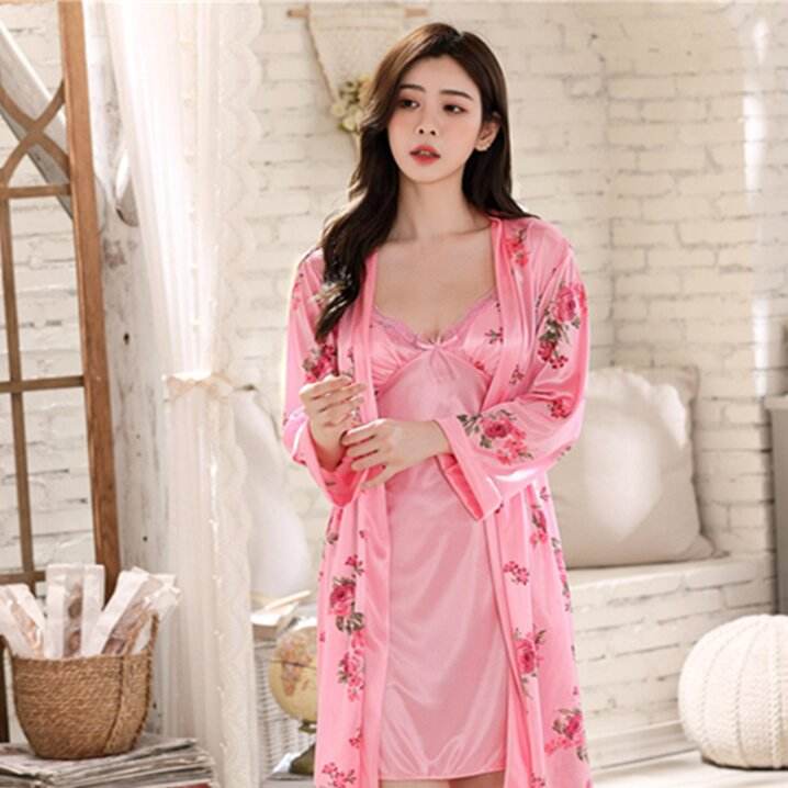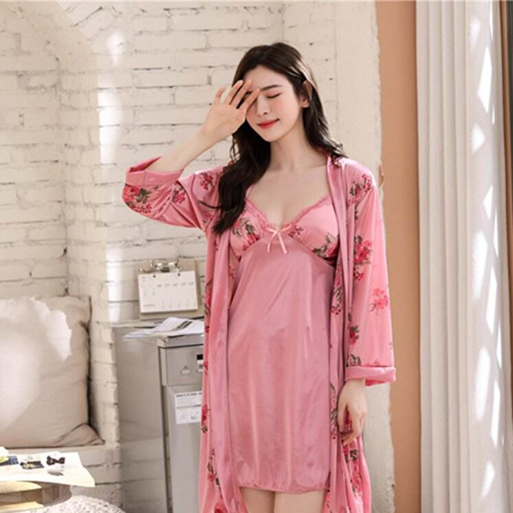 Belle camicie da notte in poliestere pigiama abbigliamento da notte Set maniche con risvolto cartuccia abiti da donna vivace bella casa