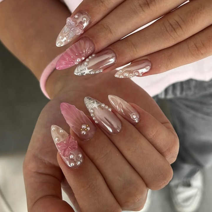 Bellissime Unghie Finte Press-on Fatte a Mano, Unghie Artificiali 3D, Unghie in Gel Pronte da Indossare
